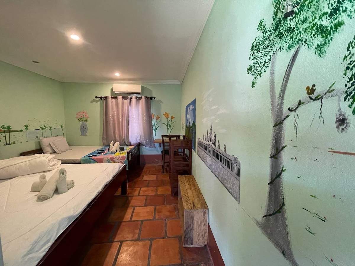 Het gebouw behoudt alle gezellige charme van een traditioneel Cambodjaans houten huis, terwijl het smaakvol zowel moderne als comfortabele voorzieningen combineert. Omringd door rijstveld met frisse lucht 24 uur. 5 minuten rijden van Markro Super Market Siem Reap. Dit is een schone en rustige accommodatie. Meer dan 80% van het pand is groene ruimte en moestuinen. We richten ons op vriendelijkheid, vriendelijkheid en brede glimlachen. De kamers zijn eenvoudig maar schoon en comfortabel.Welkom in ons landelijke dorp.