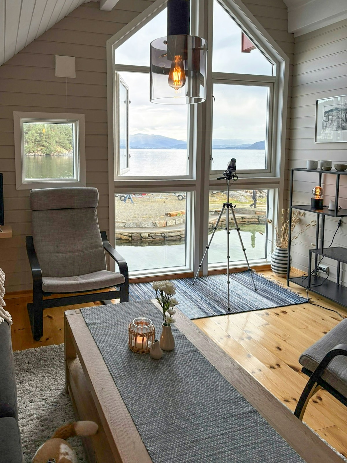 De hut is idyllisch gelegen met een panoramisch uitzicht op het prachtige dorpje Førde, de fjord en zelfs een stuk langer. Ook al ligt de hut praktisch op een stapel, leg deze op een boerenerf, koeien schapen en lammetjes in de omgeving. De hut heeft karakter, is meer dan 100 jaar oud en heeft tussen anna een groot, bedrukt Viking-schipmodel dat aan het plafond hangt. De hele hut is een paar jaar geleden gerestaureerd en kreeg toen moderne apparatuur zoals een nieuwe badkamer met verwarmingskabels en nieuwe keuken met alle benodigde apparatuur.