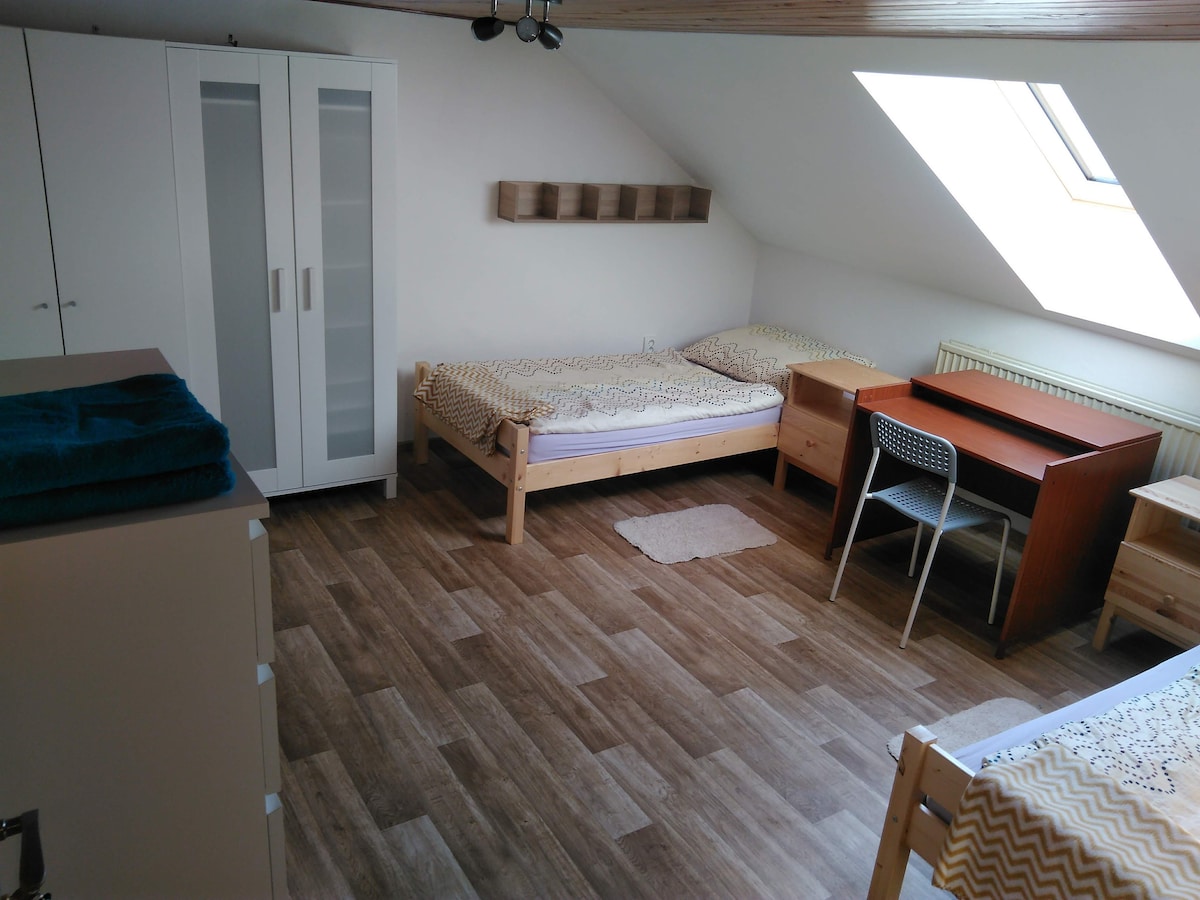 Het appartement is uitgerust met een comfortabel essen bed voor twee en een tweede comfortabel eenpersoonsbed. Er is een ruime houten kast, een kitchenette met een fornuis, een waterkoker en basis keukengerei voor koken en serveren. Het appartement heeft een aparte badkamer met douche en toilet. De kamer voor gasten maakt deel uit van een oude, zorgvuldig gerenoveerde boerderij in een afgelegen deel van het dorp Němčice - Na Podrybníku, op slechts 4 km van de prachtige historische stad Litomyšl.