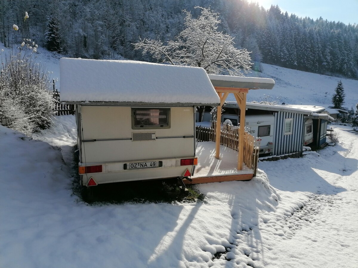 Mooie caravan (niet roken!!) in rustige en afgelegen tuin. Volledig uitgerust met luifel om buiten te zitten.Nieuw douchehuis met toilet en was- en spoelfaciliteiten speciaal voor jou! Barbecue, dorpswinkel om de hoek. Ideaal voor wandelaars, fietsers en motorrijders. Veel wandel- en excursiemogelijkheden in de omgeving. We helpen je graag verder. We spreken Duits en Engels