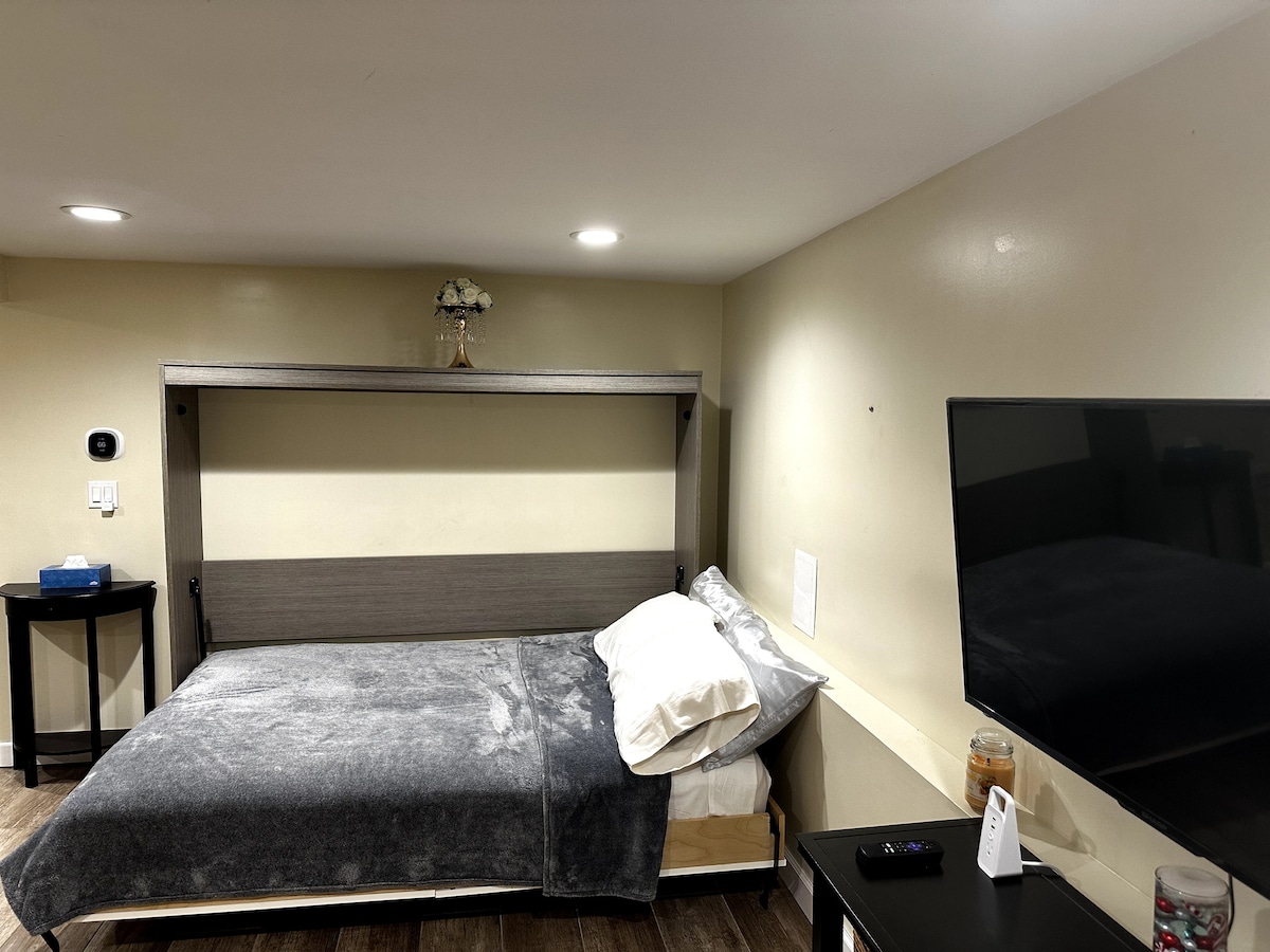 Comfortabele veilige studio met eigen toetsenbordingang in Huntington Area. Premium KABEL-TV en alle beschreven voorzieningen zijn inbegrepen. Er is een Keurig koffiezetapparaat met room en suiker zodat je ervan kunt genieten. Gezellige studio heeft ook een broodrooster, magnetron, koelkast, eigen badkamer en kleine kitchenette waar je kunt genieten van je eigen maaltijden. Je hebt een comfortabel kingsize bed.
