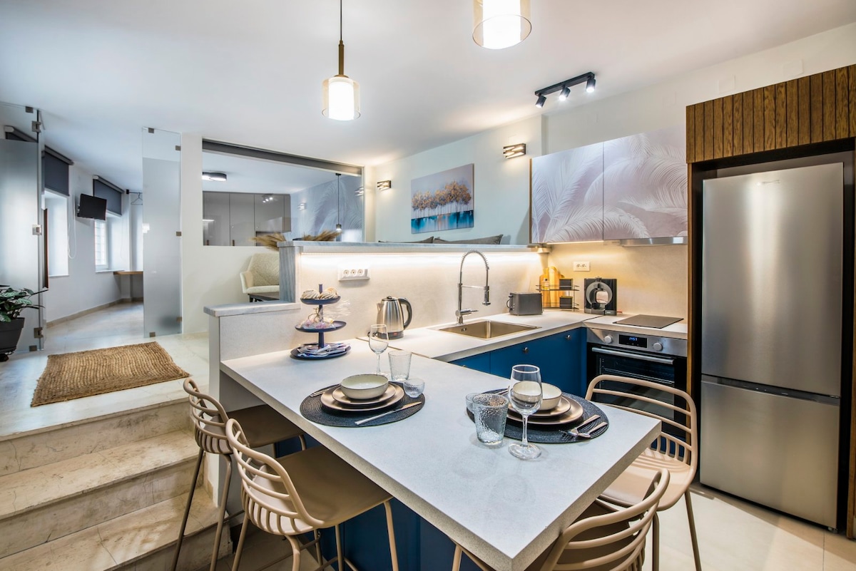 Onlangs gerenoveerd appartement van 80 m², op slechts 150 meter van het Miaouli-plein en op 200 meter van de zee. Het biedt een tweepersoonsbed, een eenpersoons-/tweepersoonsbed en een slaapbank voor maximaal 5 gasten. Inclusief een complete keuken, eethoek en woonkamer met een smart-tv, een bureau en airconditioning. Een ruime, comfortabele ruimte dicht bij winkels, cafés en het strand - perfect voor een ontspannen verblijf in Syros.