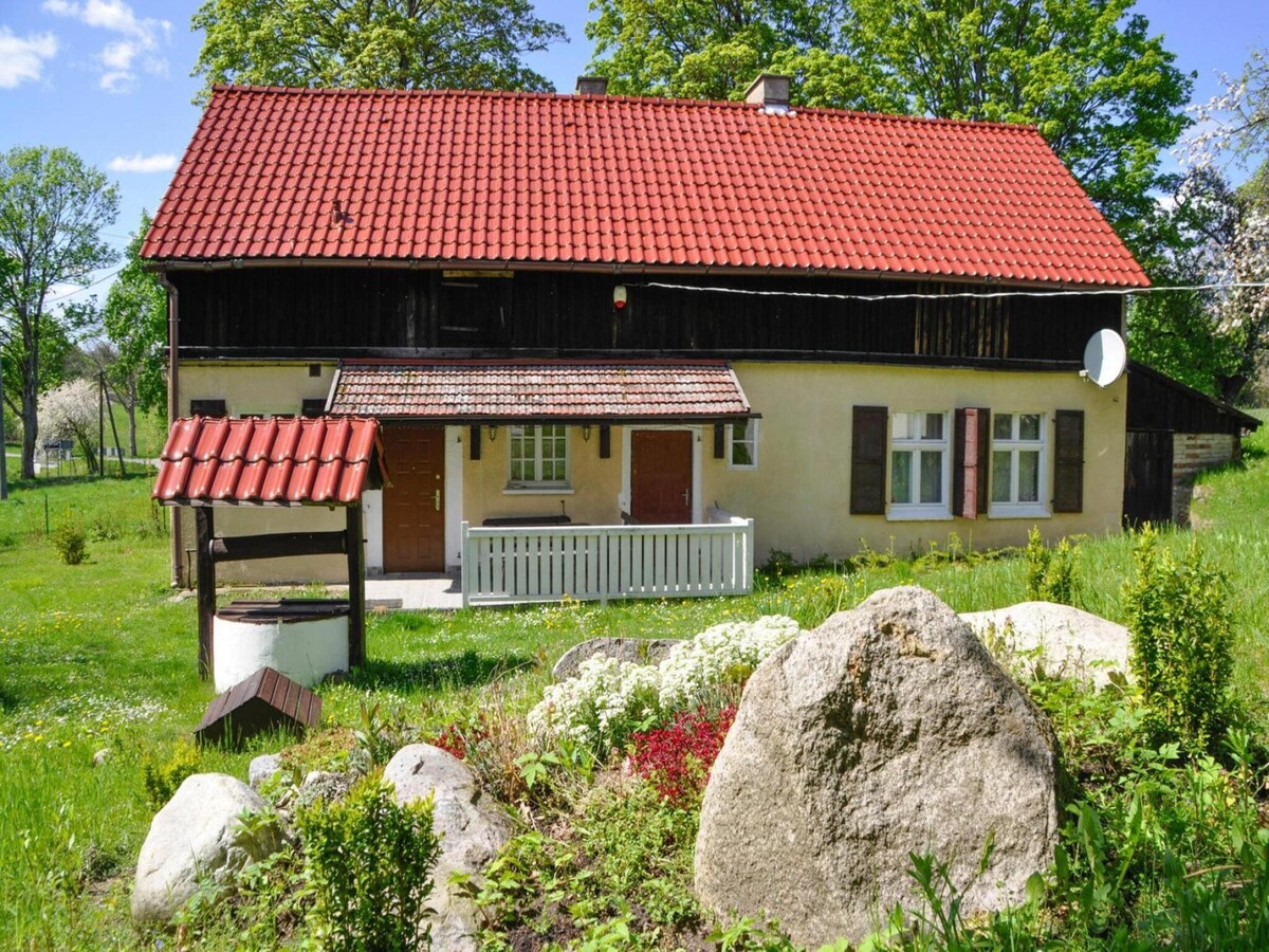 Een goed ingerichte steen en houten huisje met één slaapkamer in de 6 hectare, rand van het meerterrein van het huis van de eigenaar, omgeven door een uitgestrekt bos. Het bos is de thuisbasis van een groot aantal wilde dieren en vogels. Wilde zwijnen en herten zijn regelmatige bezoekers en er is zelfs een kleine kudde Europese Bison in de lokale omgeving. Vissen, fietsen, zwemmen en wandelen in de ongerepte rust van de Noordwest-Poolse bossen, allemaal voor de deur. Een betoverd bezoek.