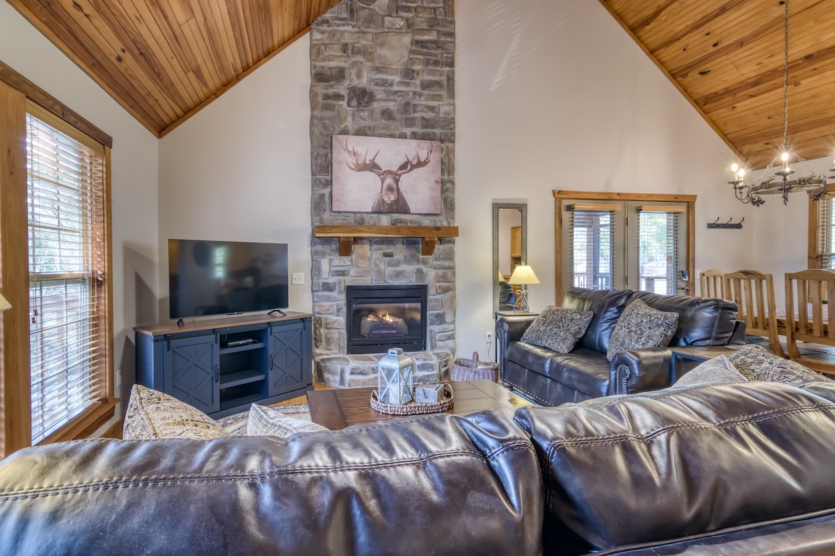 Geniet van een gezellige en ontspannen vakantie met je eigen privéhut in het bos. Dit huisje is gelegen in het prachtige Stonebridge Village. Acht minuten van Silver Dollar City en op slechts enkele minuten van Table Rock Lake/Indian Point Marina. Geniet van het vuurwerk vanaf Silver Dollar City vanaf je terras! De hut is met liefde ingericht, waaronder nieuw tapijt, meubels, apparaten en verse verf in 2023. Genoemd Loose Moose Lodge gebaseerd op het historische verhaal van een eland die naar Missouri migreert.