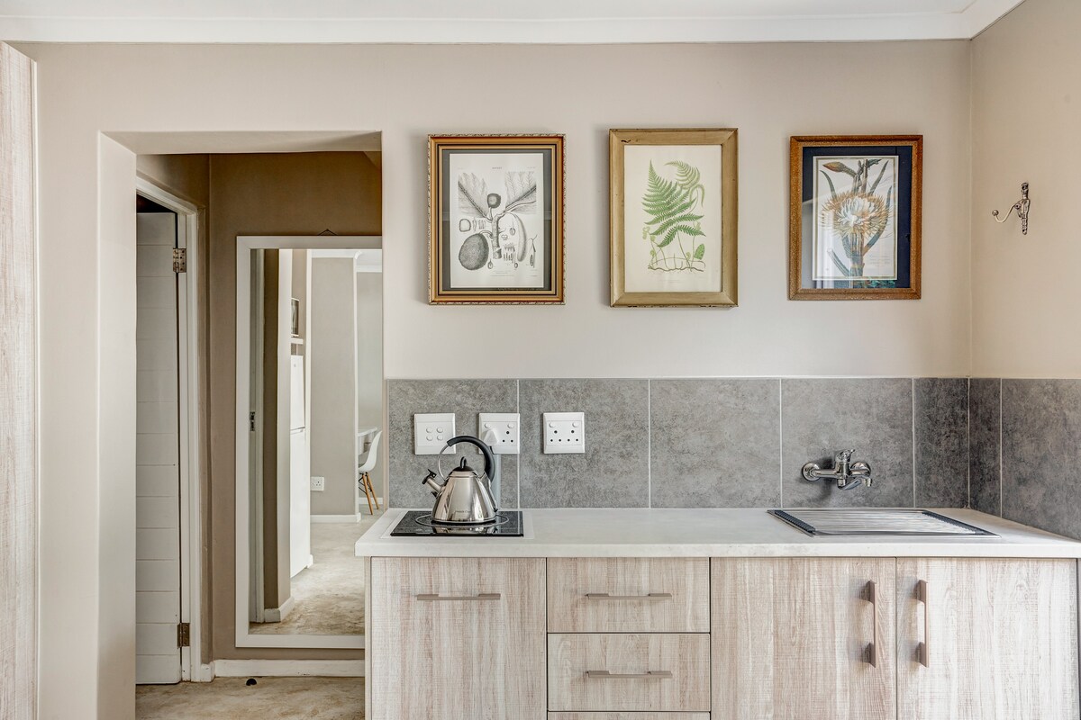 Ons huisje is gelegen in het hart van het lommerrijke Bishopscourt. 2,1 km van de botanische tuinen van Kirstenbosch en op 1,6 km van het winkelcentrum Cavendish Square. Het ruime huisje van 2 verdiepingen bestaat uit open keuken / lounge, beneden gastentoilet, 2 slaapkamers en buitenruimte. We hebben een gedeeld zwembad in onze tuin waar gasten van mogen genieten.