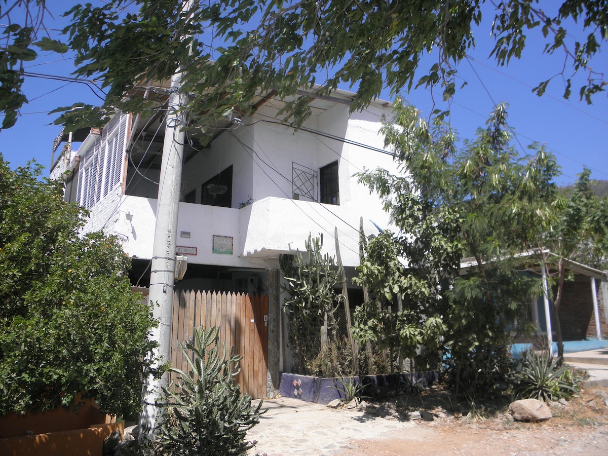 een exclusief mini-appartement met eigen ingang, is gelegen op de eerste verdieping van casa mandala taganga, de ruimte is comfortabel en schoon, met eigen badkamer, mini-keuken, werkruimte, ventilator, ingericht met ecoart stukken, zonlicht voor wifi, het helpen van het milieu. ideaal voor een langer verblijf. De was en de schoonmaak zijn elke week inbegrepen voor gasten die langer blijven. Wij geven korting op duikcursussen. een unieke ervaring op slechts 5 minuten van het strand.