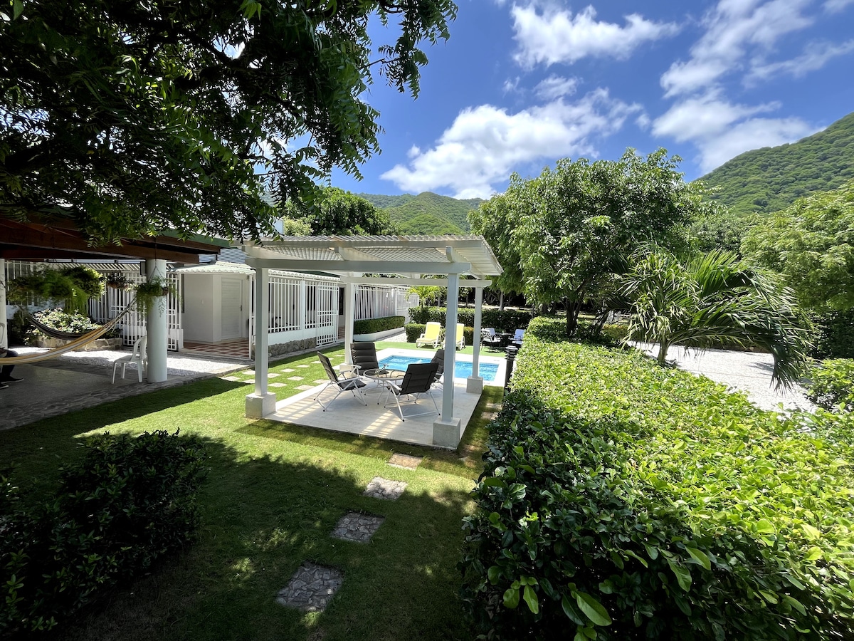 Onze hut ligt in het pittoreske vissersdorp Taganga en biedt een perfect uitje voor diegenen die willen ontspannen en genieten van de natuurlijke schoonheid van de Colombiaanse Caribische kust. • Privézwembad: Geniet van je eigen privé-oase. Ontspan in het zwembad terwijl je geniet van het spectaculaire uitzicht op de bergen en de zee. • Omgeven door weelderig tropisch groen, biedt onze hut een rustige en ontspannen sfeer, perfect om los te komen van dagelijkse stress.