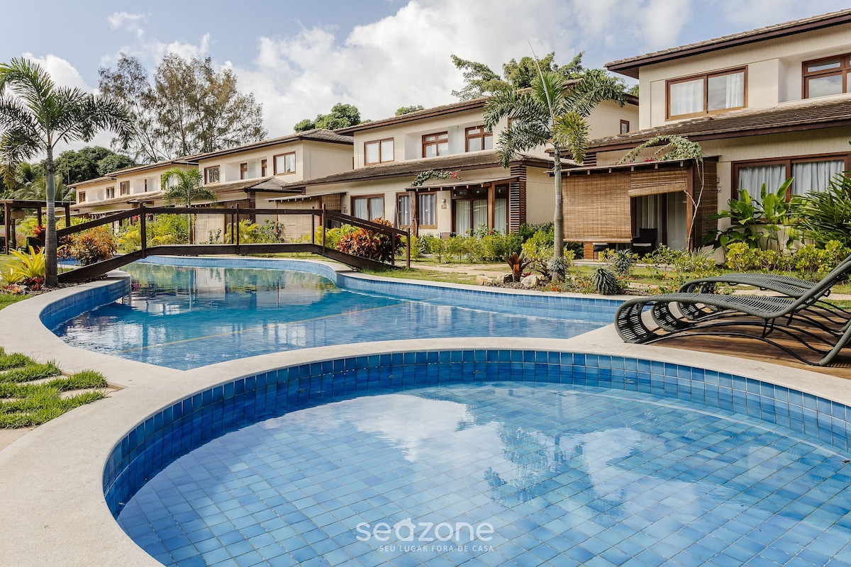 Paradijs aan Zee is een luxe toevluchtsoord aan Cassange Beach. Gelegen in een strandcondominium van 30.000 m² met groene natuur, biedt het 3 zwembaden, een fitnessruimte, tennis- en strandtennisbanen en een bar-restaurant aan zee. Het huis heeft 2 comfortabele suites, een woonkamer en een veranda met prachtig zeezicht. De volledig uitgeruste keuken, inclusief ijsmachine en bierkoeler, zorgt voor een ontspannen en luxe verblijf.