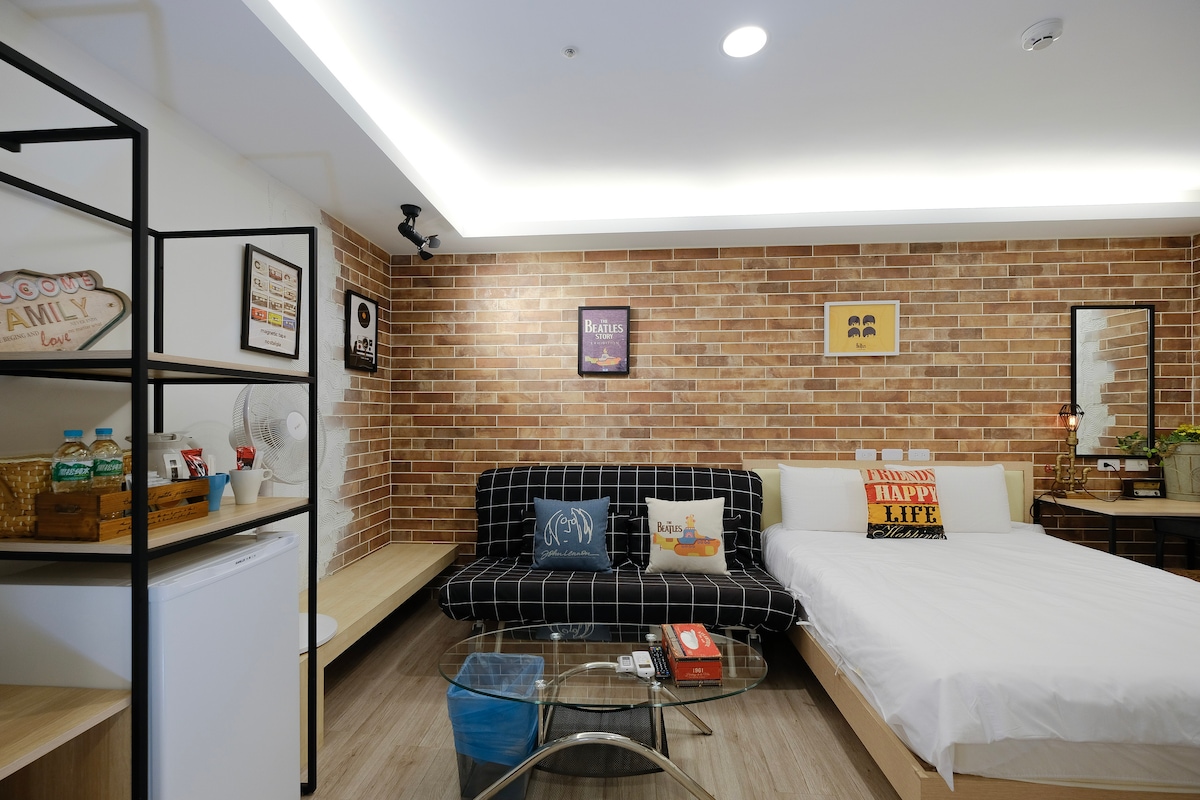位於高雄市熱鬧的三多商圈,距離三多圈捷運站步行約3~5分鐘,搭乘捷運至高雄小港機場約15分鐘,至高雄車站約10分中,至新左營站(高鐵)約20分鐘,除了捷運大眾運輸外,輕軌也加入大眾運輸的行列,步行約10分鐘即可輕鬆到達輕軌車站 (C8),到高雄各大知名景點不用再舟車勞頓,附近有太平洋SOGO百貨、新光三越百貨及大遠百百貨,IKEA、MLD台鋁生活廣場及家樂福也大約步行10分鐘路程,除了各大百貨林立外,周邊還有自強夜市及興中夜市等著旅人們去探索各種傳統小吃,另外在人文知性方面,則有建築手法非常特殊的高雄圖書總館,採用懸吊式鋼棒、輕量化設計、搭配玻璃帷幕,因此也是全世界穿透性最高的圖書館,相信選擇此住宿,絕對是最佳選擇,無論是地理位置、逛街、購物、交通都非常非常的便利。 「英倫風房型」室內風格以強烈的紅磚牆及地鐵磚為主,雖然房間沒有開窗,但是房間整體佈置,讓旅人在充實的行程中,能夠得到舒適放鬆的休息及睡眠空間,房內並配有一套完善的獨立衛浴設備,讓旅人們能夠保有隱私的獨立空間洗滌一身的疲憊,重點是價格非常平實合宜,一定能讓您不虛此行。