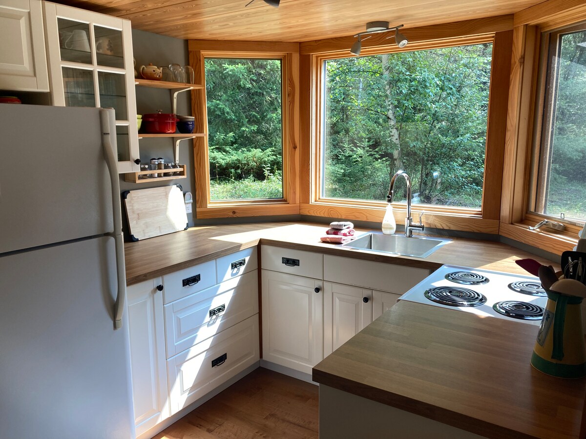 Welkom in de Wren-hut in The Kingswood, Golden, BC. Een eigen moderne hut op 38 hectare met volledige privacy! • 20 minuten naar Golden • hottub met uitzicht op de bergen • Houtgestookte open haard • vuurplaats buiten • Uitzicht op de bergen en een terras van 2,5 meter • Barbecue op overdekt terras van 2,5 meter • Picknicktafel buiten met verlichting • Luxe keuken met voldoende ruimte om te koken • Verwarmde vloeren in de douche • Snel reagerende hosts ✓ 1 uur Emerald Lake ✓ 1 uur en 10 minuten naar Lake Louise ✓ 1 uur en 30 minuten naar Banff ✓ 3 uur naar Calgary