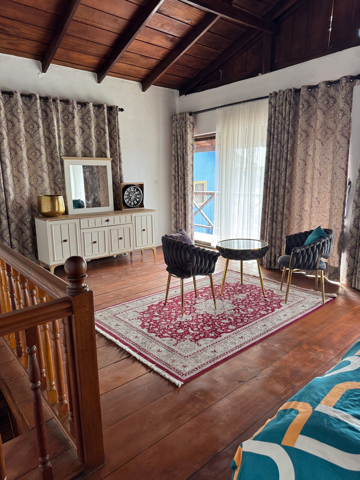 It is a 4 bedroom apartment on the 2nd floor of the attached house picture.Its is overlooking the ocean. it is also located outside town with a quite environment. The rooms are spacious enough to accommodate extra beds . However few guests staying can request for removal of some of the beds to suit your stay. Breakfast can be provided upon request. If you need any other service that is not indicated in the description, it can be provided upon request . enjoy your stay !