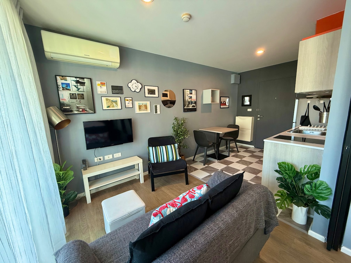 Stijlvolle suite met één slaapkamer gelegen in het centrum van Phuket: grootste winkelcentrum op 4-5 minuten lopen. 711 winkel, cafetaria, apotheek, wasserette en massagewinkel allemaal op loopafstand. Niet ver van lokale avondmarkten en Phuket Old Town. 20 minuten van het strand van Patong, op 15 minuten van de Chalong-tempel. Gratis faciliteiten: zwembad, fitnessruimte, co-werkruimte met wifi, 24-uursbeveiliging.