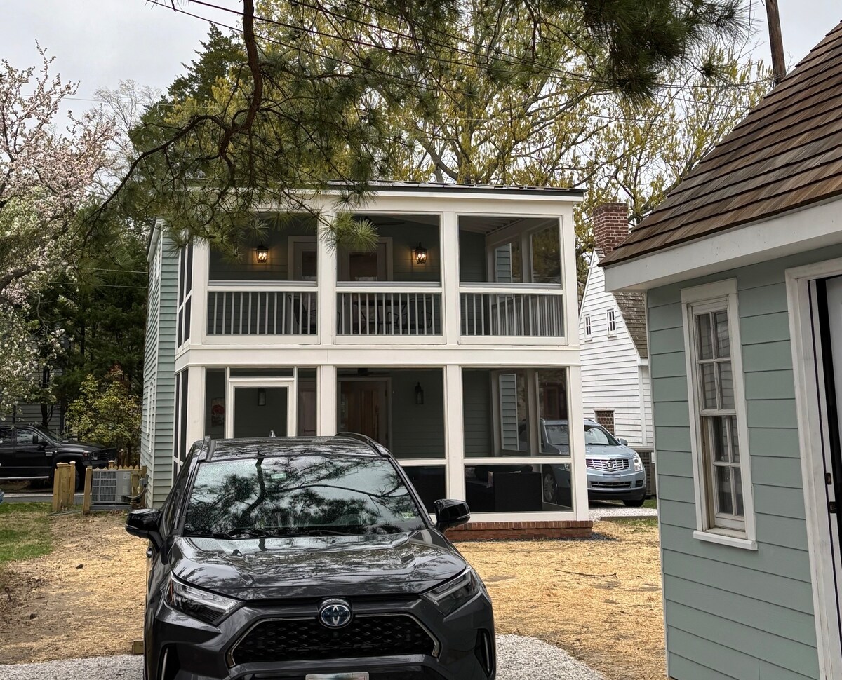 Rustig Victoriaans huis met 3 slaapkamers/1,5 badkamer aan het water. Dit 1900-huis ligt in Historic West End en is onlangs gerenoveerd om zijn historische charme te accentueren en tegelijkertijd alle moderne comfort te bieden. Op loopafstand van Long Wharf Park, de Choptank River Lighthouse en het centrum van Cambridge met geweldige restaurants en winkels. Tot de voorzieningen behoren airconditioning/verwarming, een bubbelbad, WIFI, een achterdek en grill, een veranda met schommelstoelen en een vuurplaats met Adirondack-stoelen.