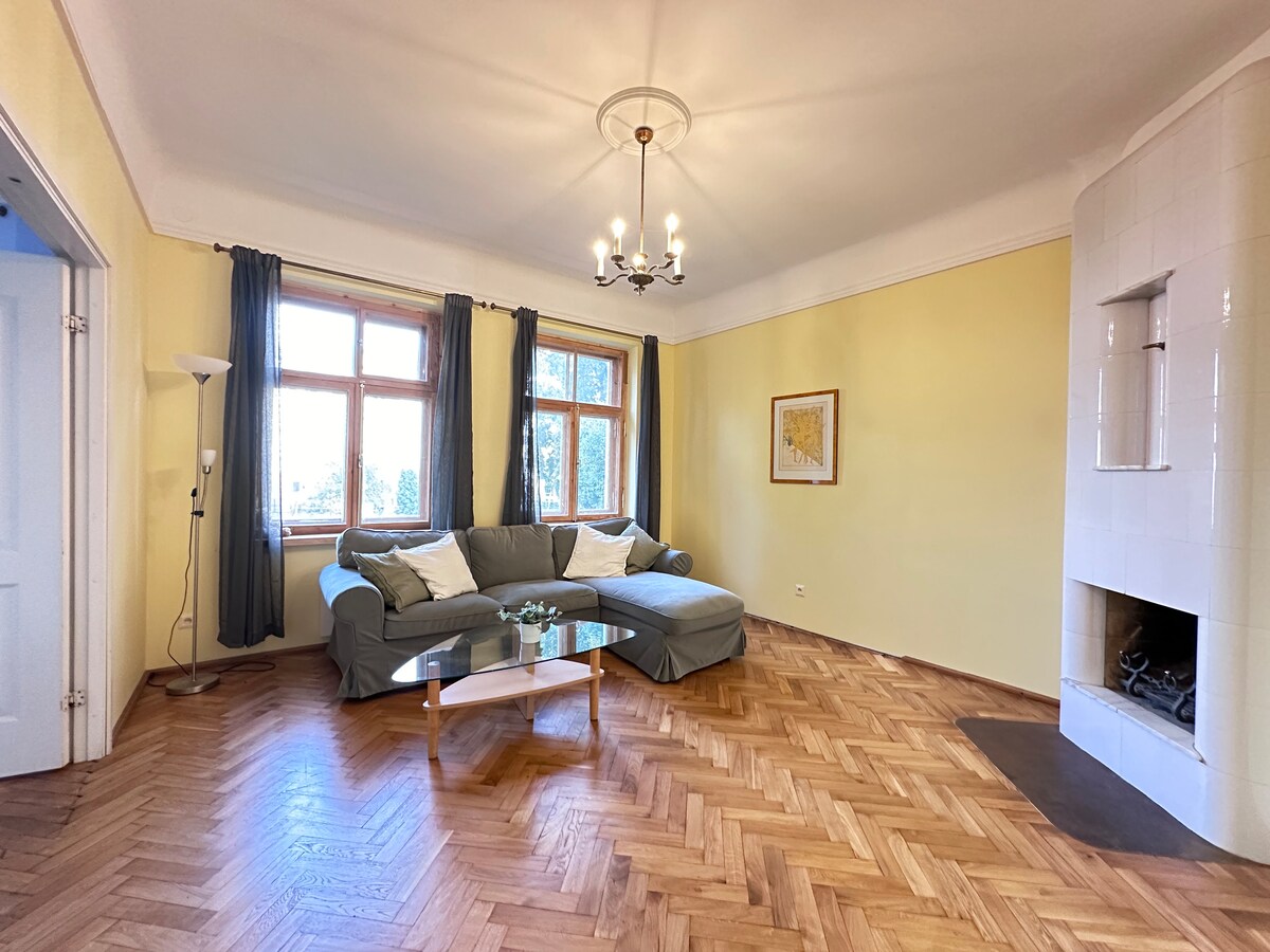 Charmant en schilderachtig appartement met twee kamers met open haard in de buurt van de oude binnenstad, midden in parken en een romantisch houten huis genaamd Kassisaba. Goed uitgerust, ideaal voor stellen en gezinnen met 1-2 kinderen. Een park voor kinderen aan de overkant van de straat. Hondenpark op 500m afstand. Op loopafstand van de oude binnenstad 1,3 km en de dichtstbijzijnde restaurants 300 m. Trendy Telliskivi ligt op slechts 15 minuten lopen. In de tuin is er parkeergelegenheid. Een kleine supermarkt voor de voordeur en een andere een straatje verderop.