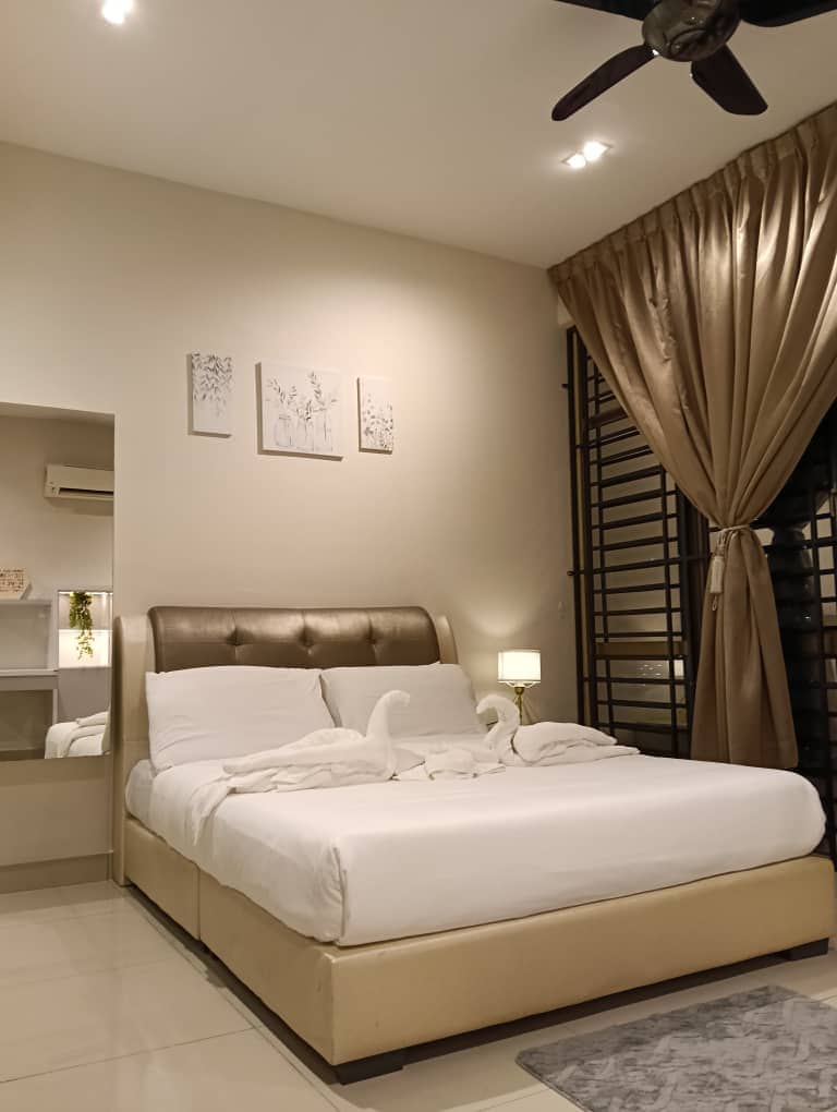 Een Deluxe Suite met 2 queensize bedden met een eigentijds-modern en gezellig design. Perfect voor stellen👩❤️👨, 4pax gezinnen, vrienden of zakelijke groepen🧑🧑🧒🧒. **Vijf minuten naar Ikea Tebrau, Mount Austin, Aeon Tebrau, Toppen, KPJ Bandar Dato, Hospital Sultan Ismail, Sunway College University. **9 minuten naar Fairview International School, Mid Valley Southkey, Ponderosa Golf en Austin Hill Golf 🛒 Minimarkten, wasserijen en restaurants zijn beneden