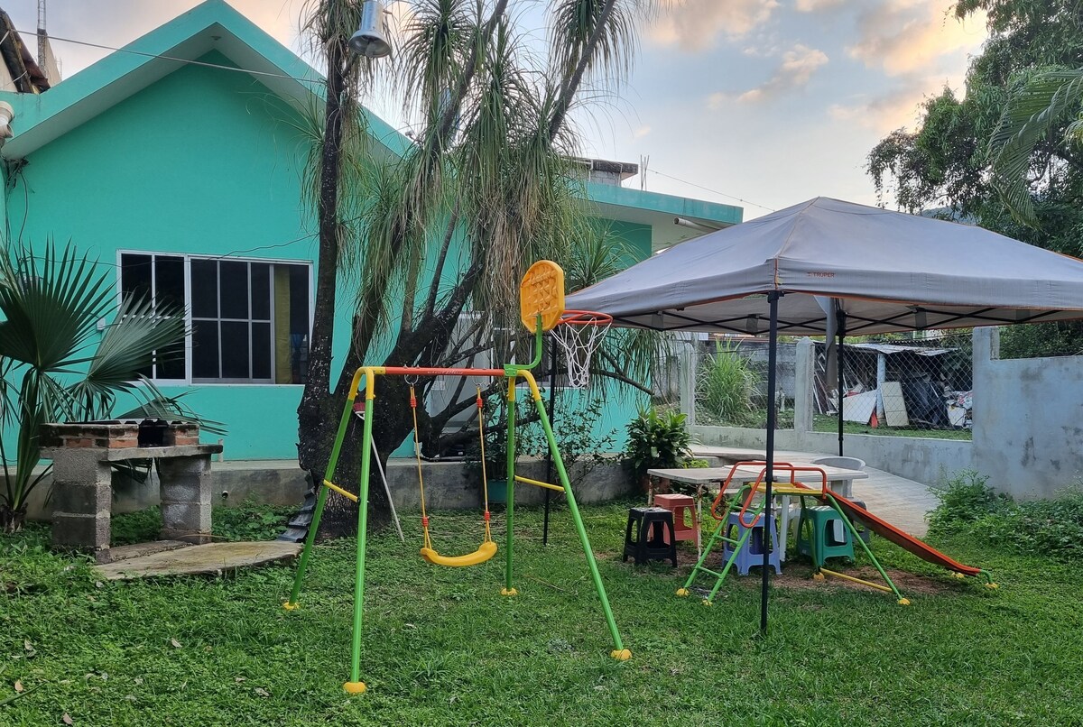 Relájate con toda la familia en este alojamiento donde la tranquilidad se respira. Mucho espacio exterior ideal para convivir y hacer día de campo Un lugar precioso en tamasopo a solo cinco minutos de cascadas de tamasopo y 10 de puente de dios y muchos otros te esperamos pronto