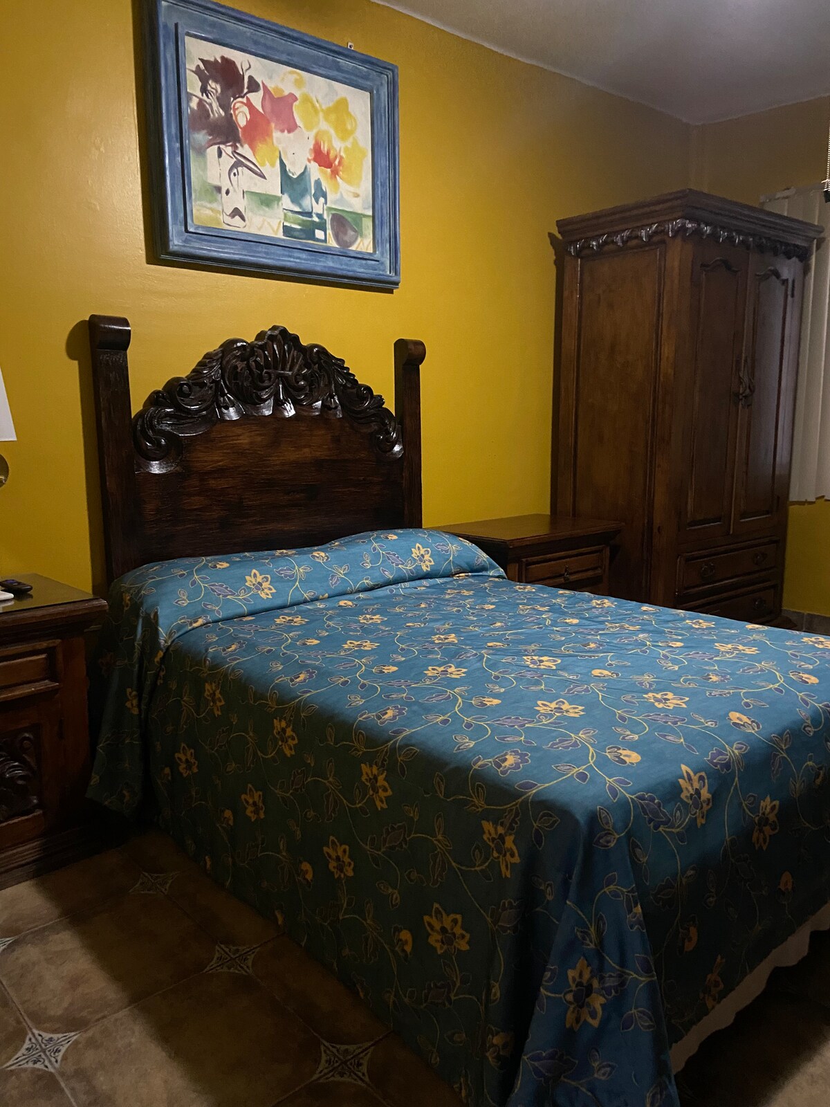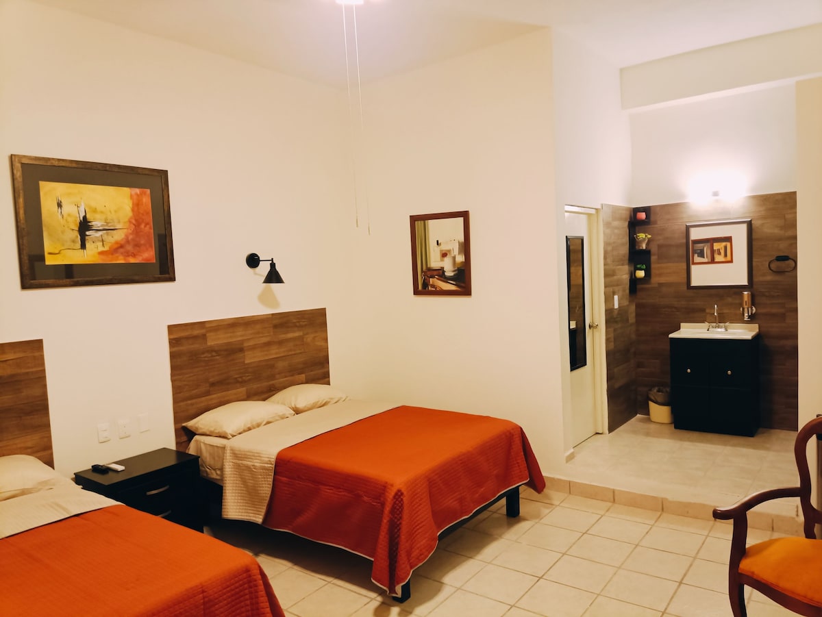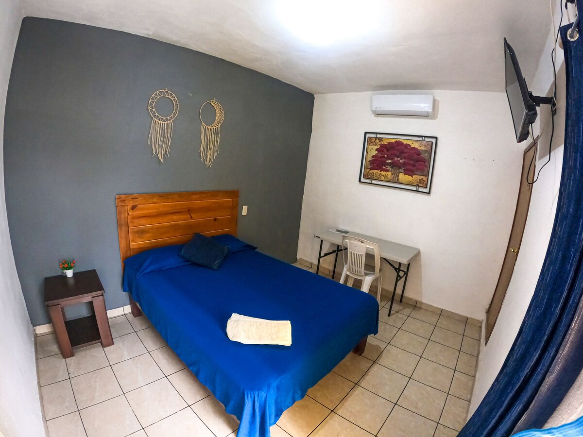 Semi-suite in HOTEL EL NAVEGANTE PLAYA MIRAMAR, kamer voor 2 personen met 1 kingsize bed, minibar, magnetron, koffiezetapparaat, wifi, smart-tv, parkeergelegenheid, arcade biljarttafel in gemeenschappelijke lobby, terras met barbecues en uitzicht op de oceaan voor gemeenschappelijk gebruik, 5 minuten lopen naar Oxxo-strand, Oxxo aan de voorkant. Bij aankomst wordt een borg van 200 peso gevraagd, die bij het uitchecken wordt terugbetaald, nadat je kamer is gecontroleerd