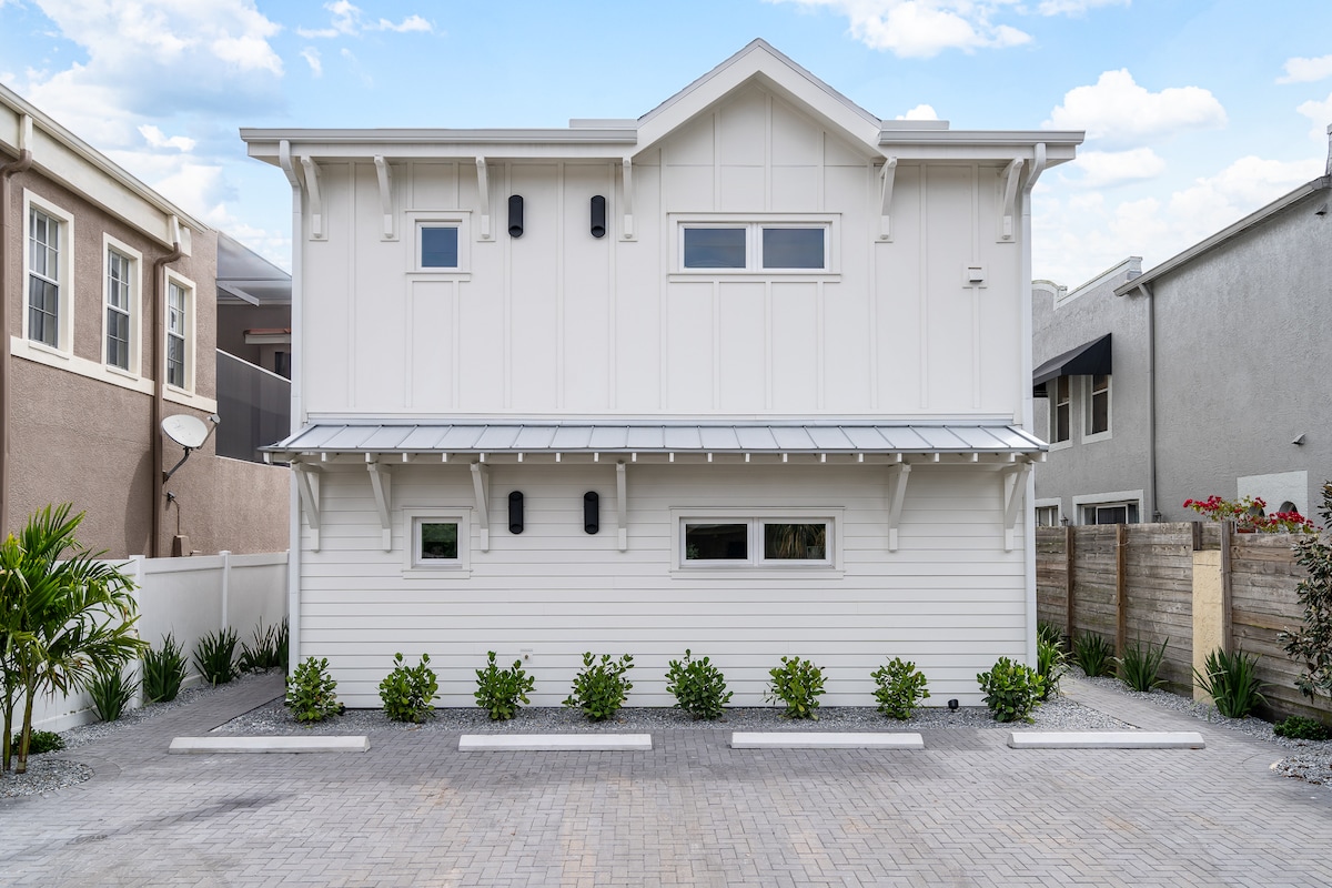 Tampa's nieuwste 3BR 3BA juweeltje: Aster Haus, op slechts 4 straten van de Riverwalk & Armature Works. Primaire kingsize en-suite slaapkamer beschikt over een eigen balkon voor twee; een woonkamer, een groot plafond van 25 voet. Buiten, een weelderige binnenplaats met overdekte veranda, pergola en ontspannende fontein lonken. Privéparkeergelegenheid voor 2 auto 's. Moderne voorzieningen gaan naadloos samen met tijdloze bungalowcharme, in deze nieuwbouw. Geniet van de eersteklas beloopbare locatie in Tampa Heights om toegang te krijgen tot het beste van Tampa.