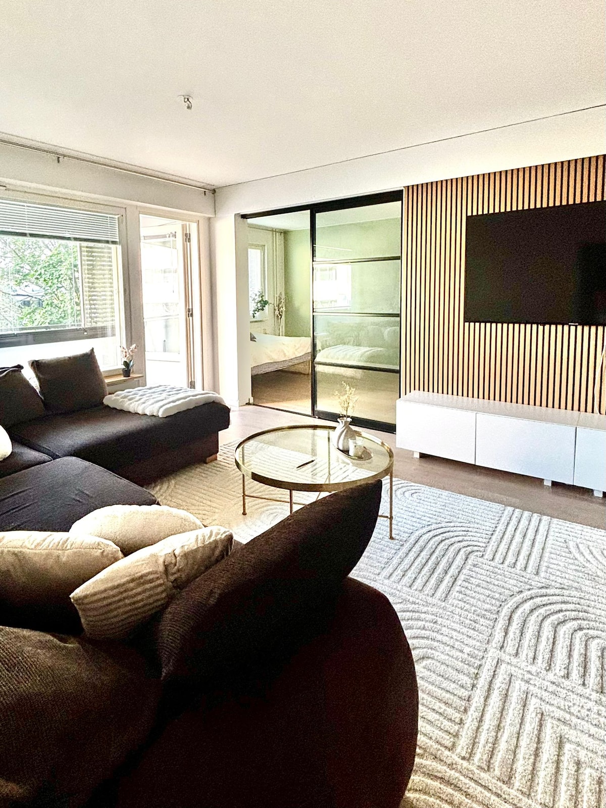 Dit prachtige, nieuwe appartement is gelegen in verband met het nieuwe stadion van Tammela. De locatie is ontoegankelijk, lopen naar het treinstation in minder dan 5 minuten, en beide tramlijnen rijden vanaf de aangrenzende halte. In hetzelfde complex bevinden zich een parkeergarage, K-Supermarket, Alko en verschillende restaurants, met brunch, lunch en diner. Hier kun je door de droge voeten van de binnenkant lopen. Het appartement is zeer Scandinavisch bewoond, wat zorgt voor rust en een goede nachtrust in de hartslag van de stad.