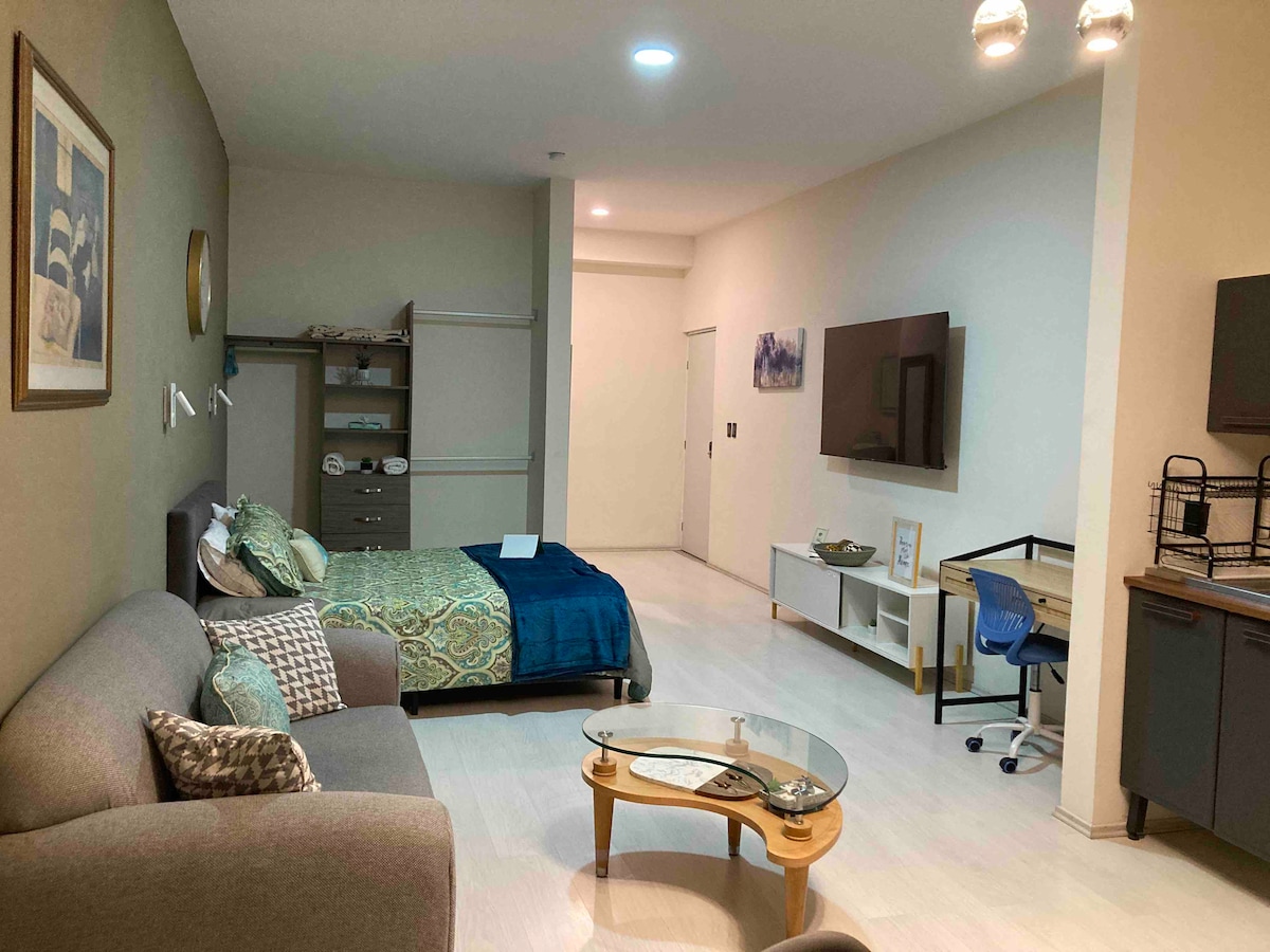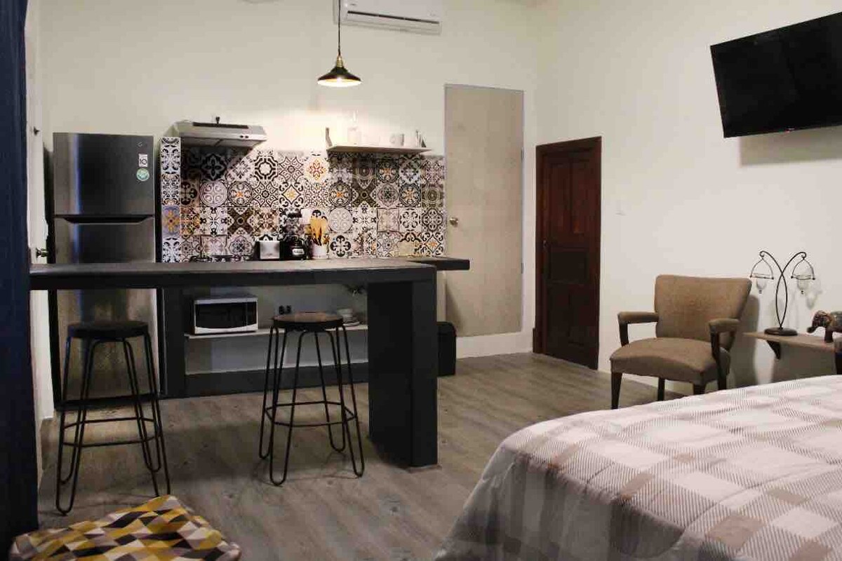 Onze studio is nieuw en heeft alle voorzieningen, van een nieuw premium ergonomisch matras, airconditioning, kitchenette, koffiezetapparaat, eigen badkamer, eethoek, gemeenschappelijke sociale ruimte, zwembad met waterval en verlichting, terras met barbecue, balkon. locatie dicht bij alles in onze haven, op 5 minuten van de luchthaven van Tampico en op 5 minuten van het nieuwe IMSS-ziekenhuis van specialiteiten, ook dicht bij het strand, winkelcentra, restaurants en attracties.