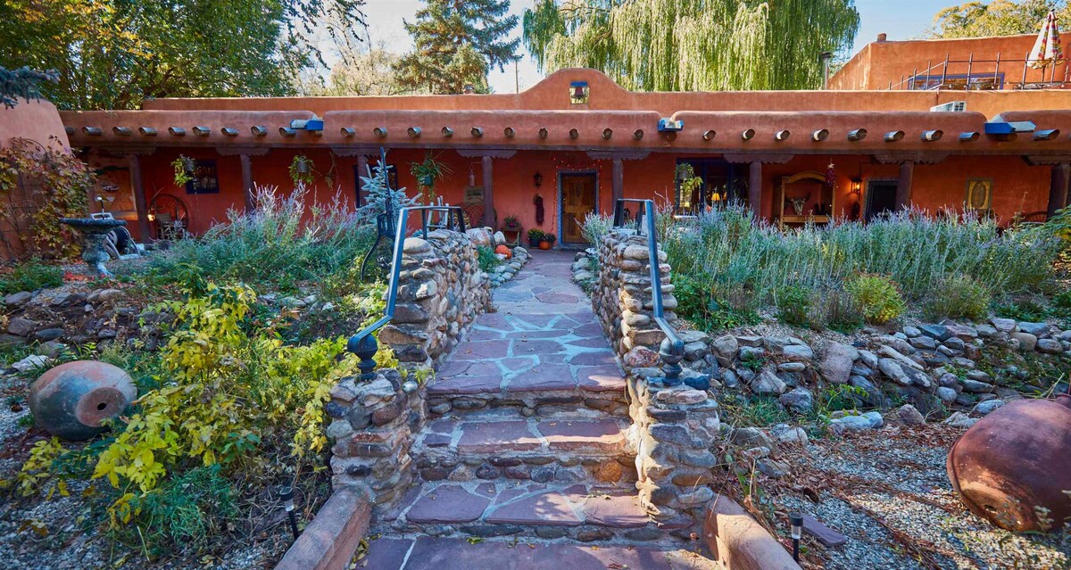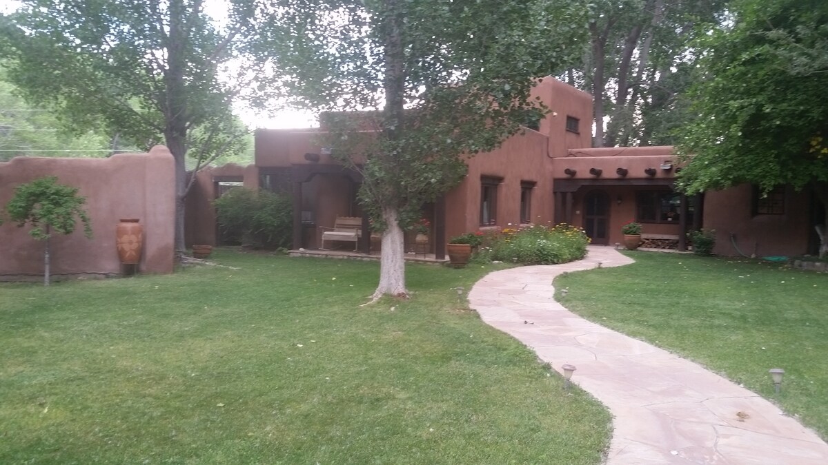 Chique en luxe twee slaapkamer adobe met een charmante tuin op 2 hectare aan de voet van de bergen. Niet je typische air b en b, deze woning heeft fijne luxe amuses zoals een nieuwe keuken met alle nieuwe apparaten en een mooie grote voorraadkast met een nieuwe wasmachine en droger. De keuken is uitgerust met Le Cruiset & Cuisinart pannen, lakens met een draaddichtheid van 800, een met dons gevulde bank voor je kiva open haard en prachtige kunst. Geniet van een tuin met een waterval en een hangend dagbed om te ontspannen onder de sterren