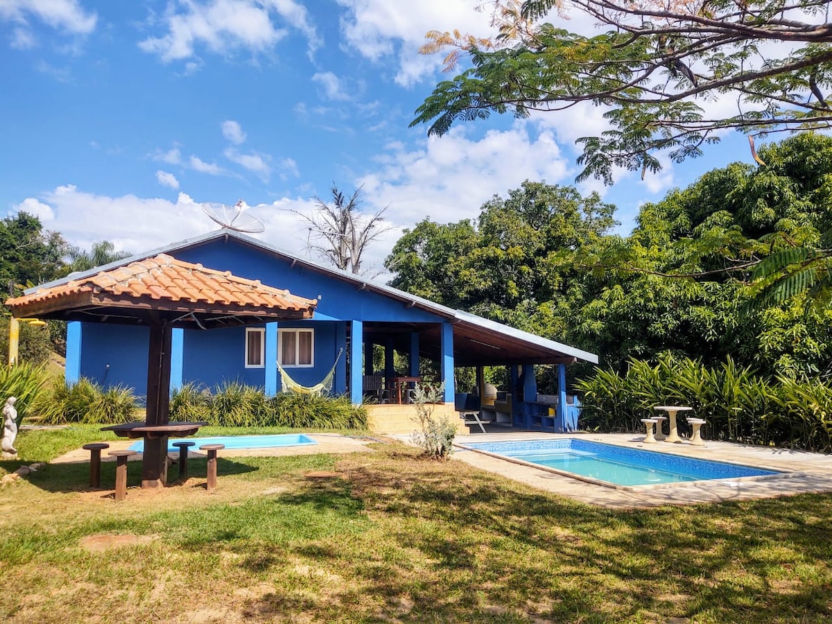 Verblijf tot 04 personen. Rustieke charme en gezelligheid in een eeuwenoud huis, in Fazenda Água Limpa. Ideaal om uit te rusten in de natuur. Wonen, dineren en keuken in een open concept. Complete badkamer. In de tuin: pergola en vuurplaats voor sterrennachten. In een gereserveerde ruimte, prachtig zwembad met strand, ligstoelen, hangmatten om te ontspannen en gastronomisch gebied met barbecue, houtkachel, tafels en structuur om een goede barbecue te maken. Zeer groen en wandelpaden.