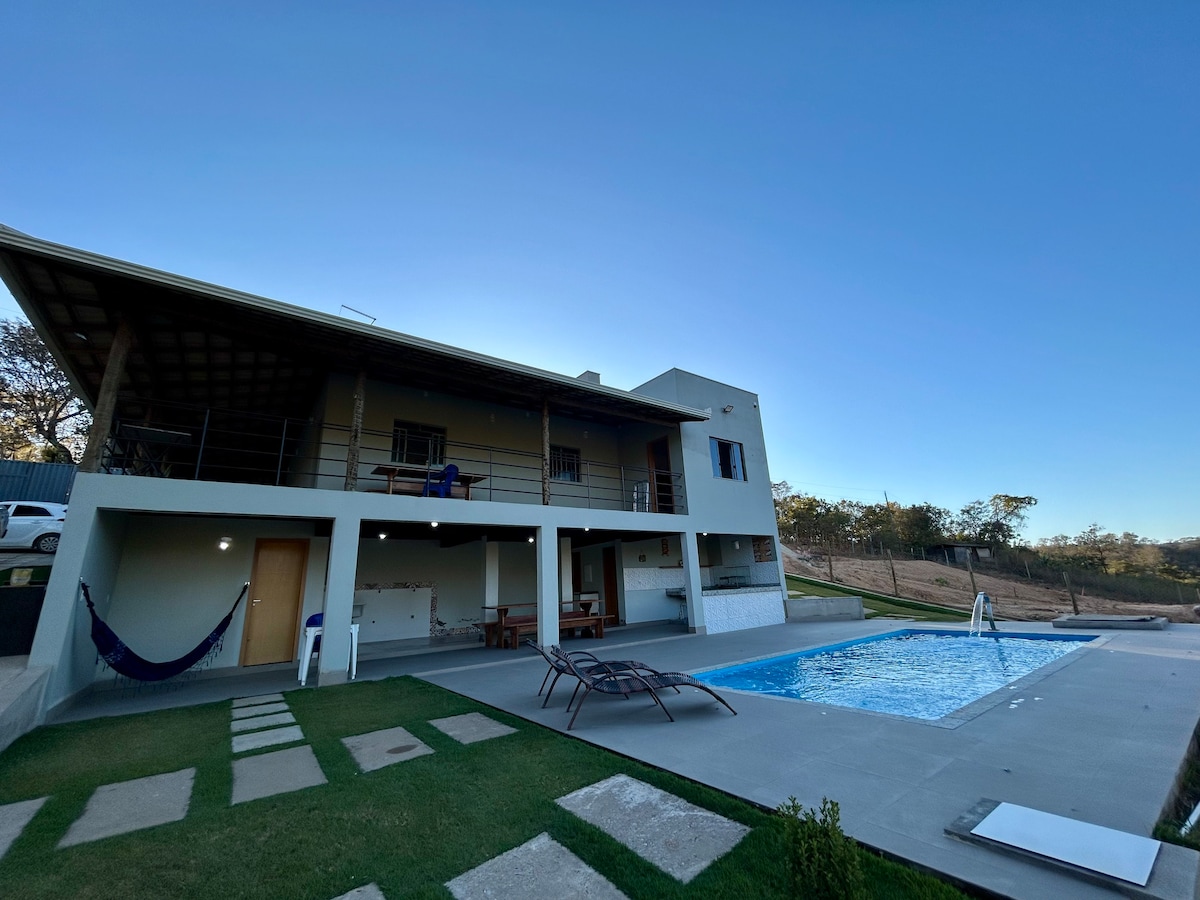 Huisje op 60 km van plein 7, BH. Omheinde gemeenschap, wifi, zwembad, sauna, 3 grote slaapkamers. Geweldige plek om te rusten met familie en vrienden met familie en vrienden. "Ik droom van de dag dat mijn huis in het land mijn weekend weg zal zijn. Hoewel ik daar niet naartoe kan verhuizen, omdat ik in de stad mijn steun heb, zal ik mijn ontsnapping maken voor geluk en voor de rust die ik hier mis."