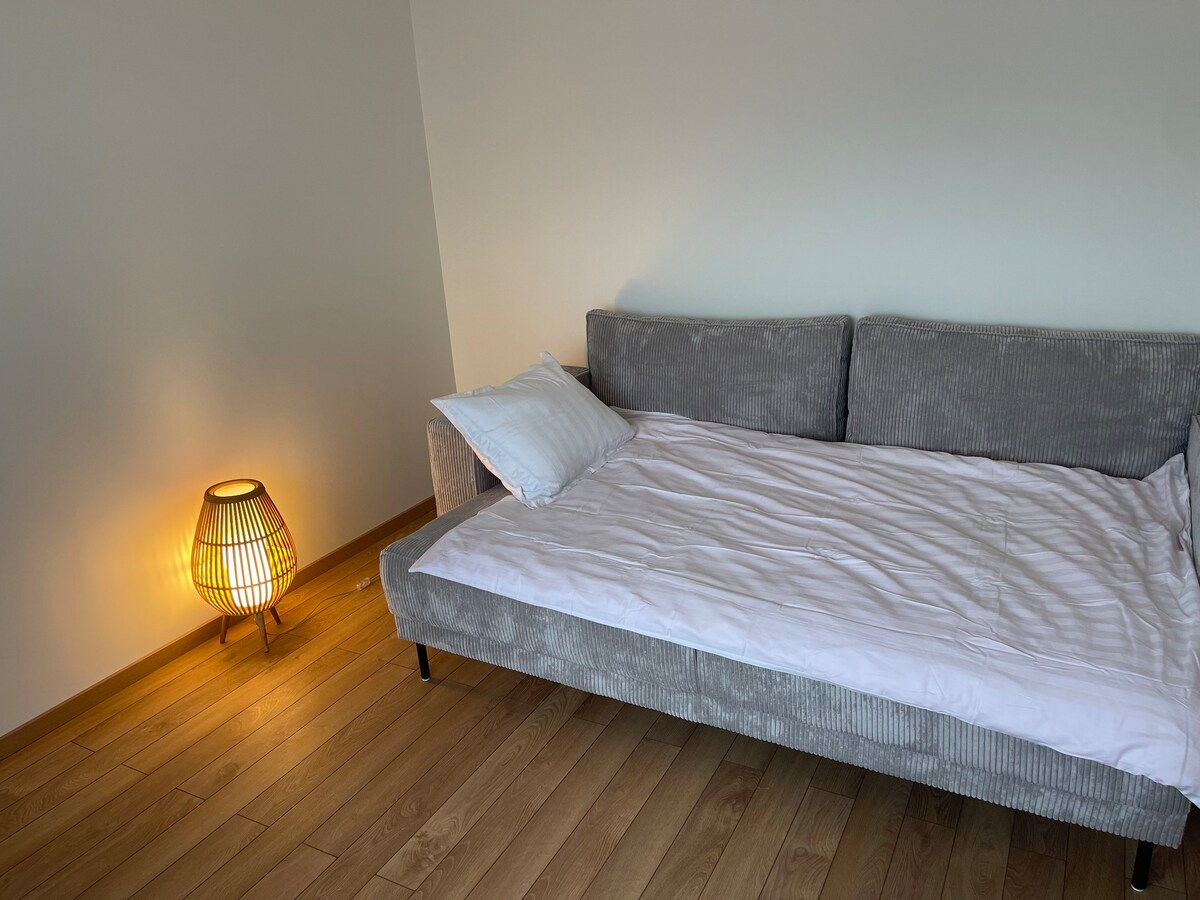 Een onlangs gerenoveerd en gerenoveerd appartement, op tien minuten lopen van het centrum van Ventspils. Ideaal voor een gezin met kinderen, kan maximaal 5 personen ontvangen. Het heeft een slaapkamer met een queensize bed en ook een woonkamer met twee aangrenzende bedden - een tweepersoonsbed en een eenpersoonsbed (ideaal voor een stel met een kind). Vaatwasser inbegrepen, evenals alle basisvoorzieningen voor het koken in het huis.
