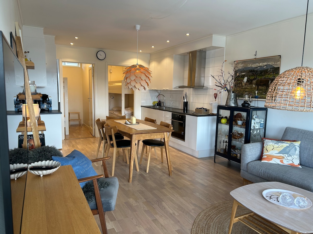 Appartement met twee slaapkamers en gecombineerde keuken en woonkamer. Prachtig uitzicht op Tärnaby en Ryfjället. Comfortabele accommodatie voor maximaal 6 personen. Sauna, balkon, wifi, skiopslag en balkon op het zuiden. Parkeerplaats met motorverwarming stopcontact voor één auto. In de winter heel dicht bij Hassebacken/De kabelbaan (skiën uit, bijna skiën, bekijk de openingstijden met het liftbedrijf), zomertijd directe toegang tot mooie bergnatuur met wandelen, paddenstoel en bessen buiten de knoop. Langlaufen, sneeuwscootermanager, alpine erg dichtbij