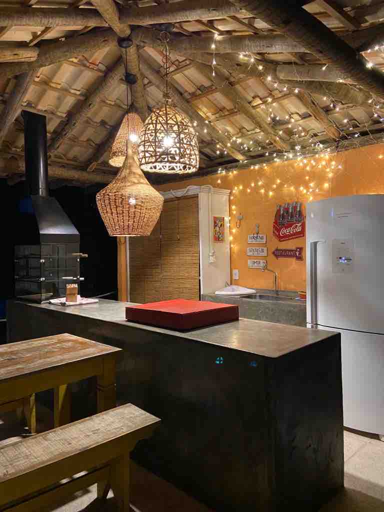 Huis met invloed van de Balinese villa's, rustiek maar extreem gezellig en verfijnd, met alles van de hoogste standaard, meubels, apparaten, bed en badkamers. Gourmet Dreams Area met gas- en houtskoolgrills, houtgestookte oven, kookplaat en roker. Spa met 1.400 liter verwarmd water, een sauna helemaal in Hijau steen met een panoramisch uitzicht op het bos. 5 enorme schermen, 2 van hen 75". Equipamentos Elettromec, Keukenhulp, Le Creuset. Internet 500 Mb. Paradijs voor fijnproevers!