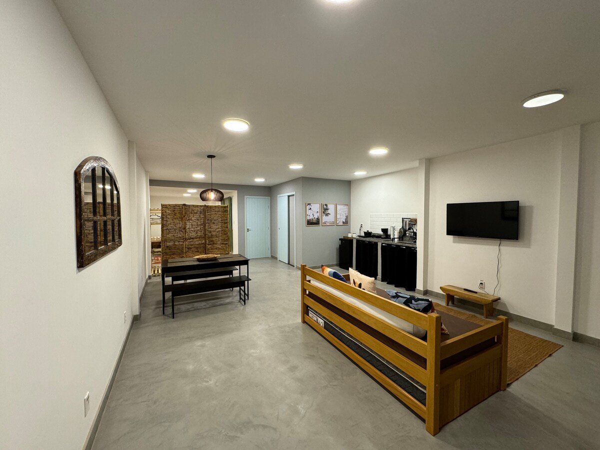 Welkom bij Onda Lofts, je moderne uitje in Armação dos Búzios! Gelegen op slechts 2 minuten lopen van de beroemde Rua das Pedras en prachtige stranden, biedt onze centrale locatie het beste van de stad binnen handbereik. De dubbele lofts zijn groot en modern, ontworpen om comfort en functionaliteit te bieden. Elke nieuw gebouwde villa heeft een keuken en een eigen balkon, perfect om te ontspannen en je loft te verbinden met een open omgeving. *We hebben geen hotelservices *