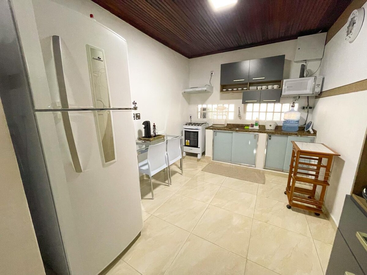 Volg ons op @ekoahomevacation. Prachtig huis met een capaciteit voor maximaal zes personen. (BELANGRIJK Om het exacte aantal gasten en huisdieren te informeren). Mobiliada en gelegen in een omheind appartement met alle laser- en beveiligingsinfrastructuur. 3 slaapkamers (1 suite) met airconditioning, wifi, tv, Netflix. Ruim en comfortabel, het heeft een uitstekende privéruimte met een privézwembad en houtskoolbarbecue. 20 minuten van het centrum van de hoofdstad en de belangrijkste regio's van de stad.