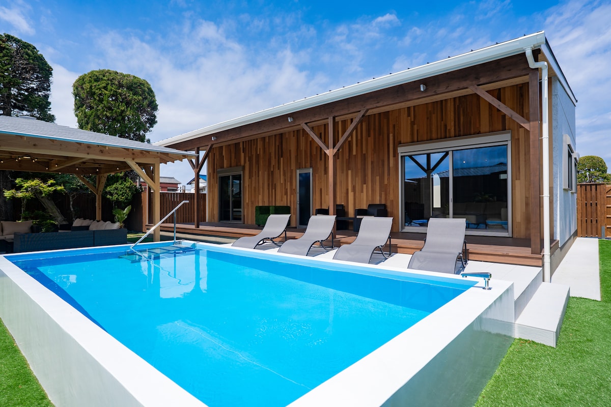 Dit is een huurvilla waar je een andere tijd kunt doorbrengen dan de dagelijkse stroom terwijl je kijkt naar de veranderingen in het getij van de Isumikawa-lagune. Geniet van een ontspannen en luxueuze tijd met het landschap van de lagune die zich ver weg uitstrekt, het geluid van de golven van daarbuiten en de aangename bries die over het water waait. Een bungalowfaciliteit bestaande uit 3 slaapkamers en een grote LDK op een terrein van 800 vierkante meter.De woonkamer heeft ramen aan twee zijden en je kunt genieten van het uitzicht op de tuin en de lagune voor je Met meer dan 80 vierkante meter houten terras kun je ontspannen met hangmatten en loungestoelen.Het houten dek heeft een houtskoolbarbecue en is gratis te gebruiken (vreugdevuren zijn niet toegestaan) De tuin is ongeveer 300 vierkante meter en is bedekt met gras, zodat kinderen naar hartenlust kunnen rondrennen. Het is ongeveer 10 minuten rijden naar het surfstrand aan de kust van Tsurigazaki en Tai Tokai Beach, waar de olympische surflocatie zich bevindt.Ook op een paar minuten lopen van het strand aan de Stille Oceaan Geniet van een ontspannen verblijf van twee dagen met 26 uur van inchecken tot uitchecken. Als je op zoek bent naar quality time in plaats van luxe, dan denk ik dat het je favoriete toevluchtsoord zal zijn