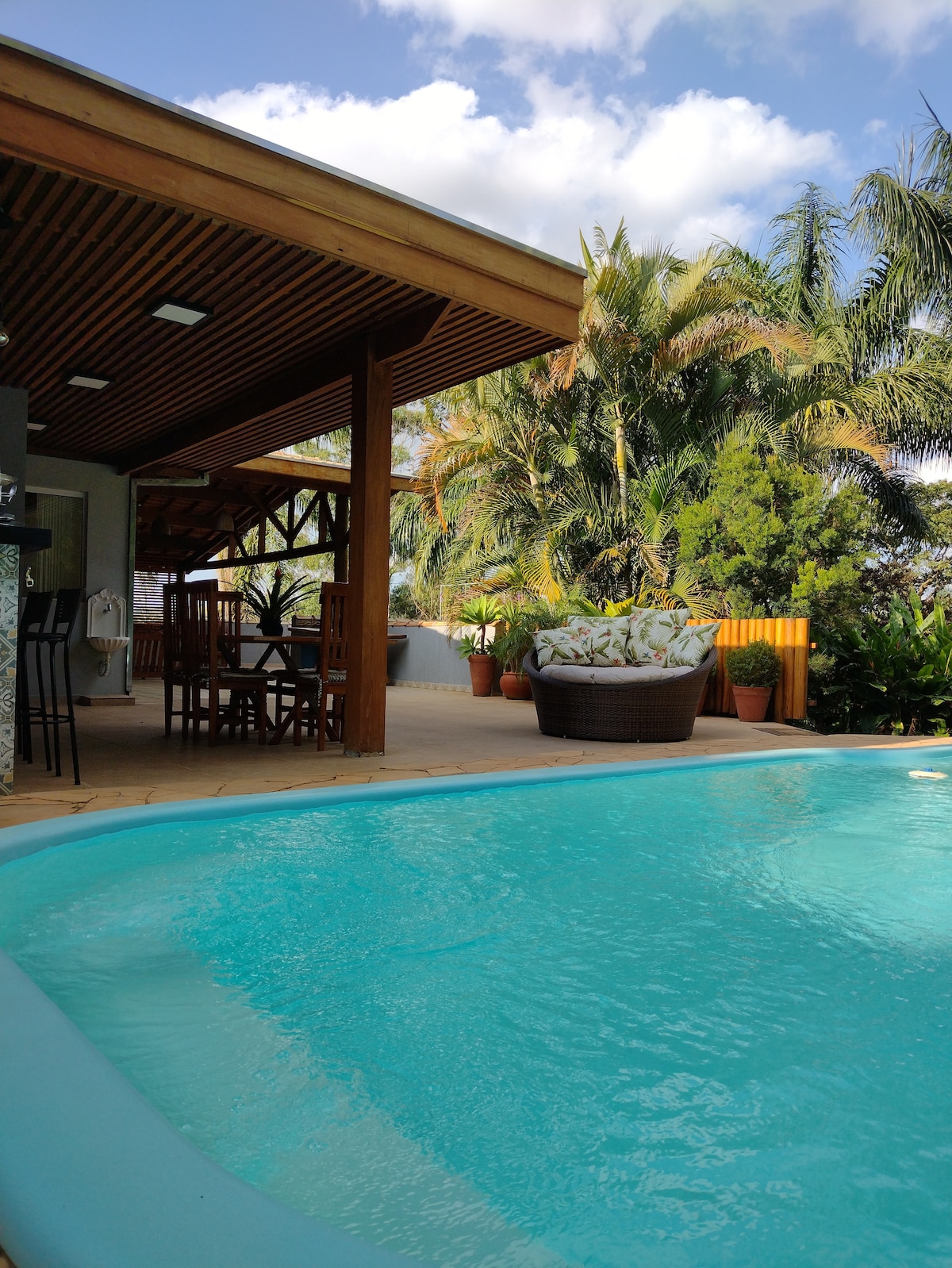Vergeet je zorgen in deze ruime en rustige plek. Sítio Alto do Piracuama, op 5 minuten afstand van het wachtstation, in de buurt van de Piracuama club. Huis met 3 slaapkamers, 2 suites met tweepersoonsbed en een eenpersoonsbed, 1 slaapkamer met 3 eenpersoonsbedden en 2 tweepersoonsbedden, twee gedeelde badkamers. Kiosk met barbecue, houtkachel, vriezer en badkamer. Zwembad. Grote ruimte om te parkeren. Gemeubileerde keuken en met keukengerei zoals potten en pannen, borden en bestek.