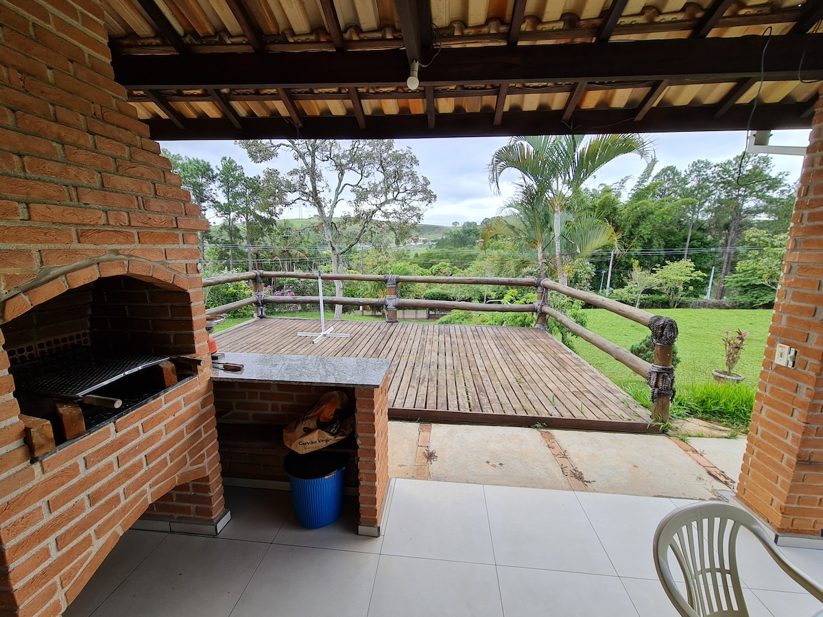 Ontspan met het hele gezin in deze rustige accommodatie, met veel verbinding met de natuur en een bevoorrecht uitzicht op de stad en een deel van de bergketen Mantiqueira! We hebben barbecue en houtkachel! Het prachtige zwembad is een pluspunt: gegarandeerd plezier! Ben je op zoek naar een plek om je feest te geven? Dus je hebt het net gevonden. Onze ruimte biedt comfortabel plaats aan maximaal 30 personen, gezien de eetruimte, het zwembad en de badkamers.