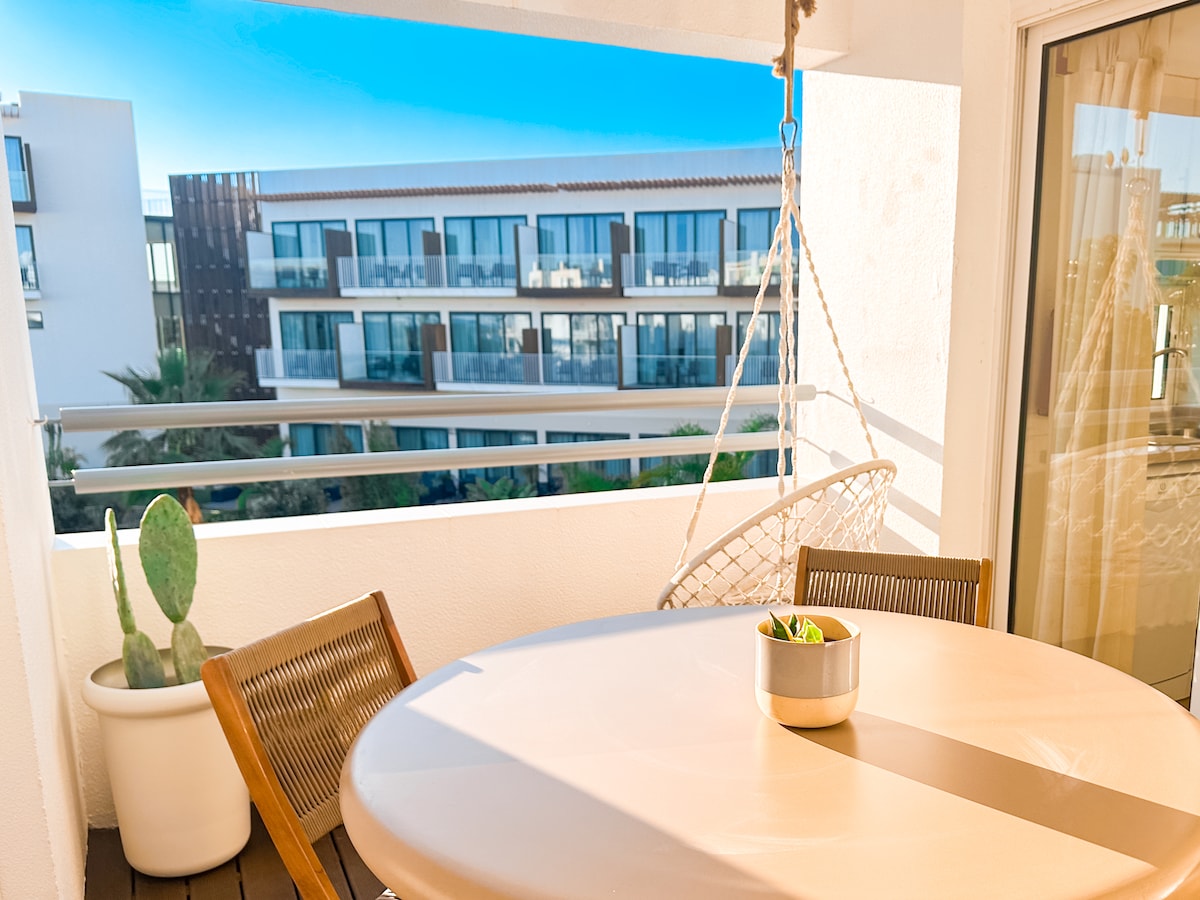 Ontsnap naar ons gezellige vakantiehuis in Cabanas, genesteld in het Golden Club Cabanas Resort. Geniet van privétoegang tot het strand, meerdere zwembaden, een bubbelbad en wellnessfaciliteiten. Ons huis beschikt over twee prachtige balkons waar u kunt zonnebaden en uw maaltijden kunt nuttigen, een uitgeruste keuken, een comfortabele en gezellige woonkamer en een zonnige slaapkamer. Geniet van de zon op het terras of verken het nabijgelegen natuurpark Ria Formosa en het charmante Tavira. Deze retraite biedt ontspanning en dierbare herinneringen in de Algarve.
