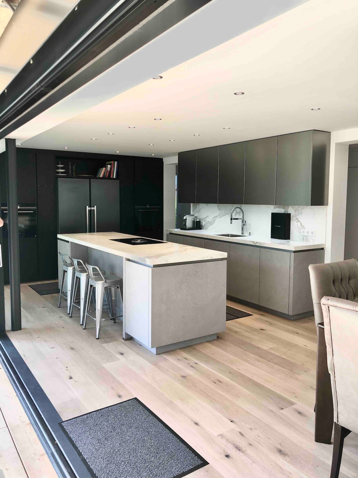 Onze huiselijke bergretraite was vroeger het huis van mijn grootouders en is onlangs volledig gerenoveerd. We wilden de knusse en gezellige traditionele sfeer behouden met een combinatie van traditionele meubels en een moderner bijna minimalistisch interieur. We hielden delen van het traditionele meubilair en een prachtige collectie van de handgesneden portretten van mijn grootvader op de begane grond en combineerden het met helder hout en wit op de eerste verdieping om de sfeer te verlaten.