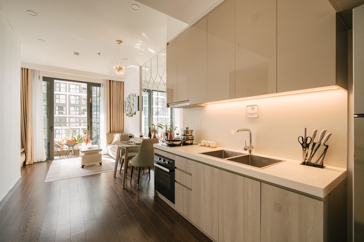 Kind House – Minimal Luxe 2BR bij Masteri West Heights Het appartement met 2 slaapkamers is ontworpen om minimalistisch te zijn, maar volledig ingericht, vlekkeloos schoon en verfijnd in elk detail. De woonkamer is licht, de keuken zit vol met gereedschap, de witte slaapkamer ruikt fris van de zon, het balkon is open. Gelegen in de moderne Masteri West Heights met zwembad, fitnessruimte, groen park, winkelcentrum. De verhuurder is attent, snelle ondersteuning, en biedt een warme thuiservaring.