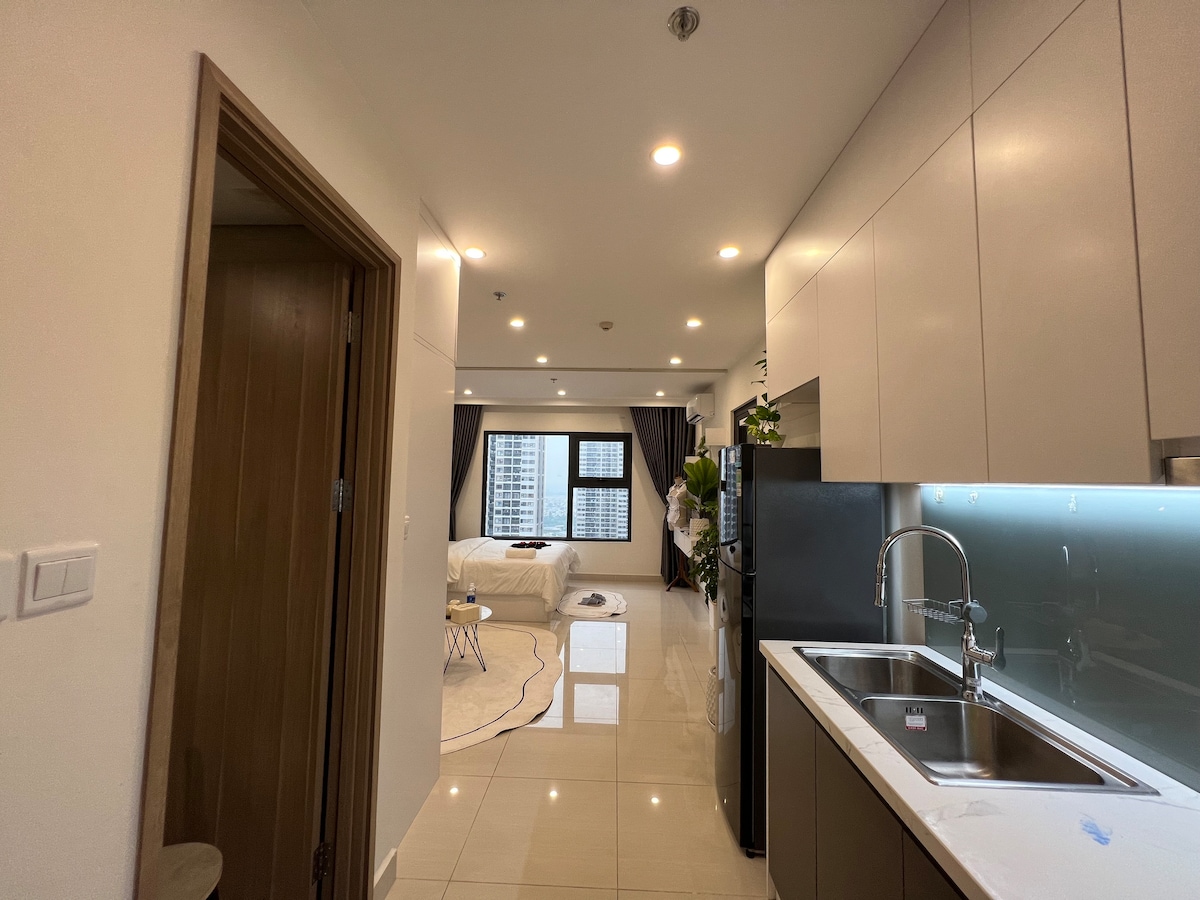 Luxe en ruim appartement met 1 slaapkamer en uniek design alleen bij Masteri West Heights! Dit is het enige appartement met 1 slaapkamer met uitzicht op het meer in het gebouw, het appartement heeft een zeer comfortabel privékantoor. De ontvangsthal biedt een warme en luxe ruimte van een luxe hotel, waar u bij u thuis luxe kunt ervaren. Word verwelkomd als een Super VIP direct vanuit de lobby, met de persoon die de deur opent die elegant buigt alsof hij de VIP-ruimte van een vijfsterrenhotel betreedt.