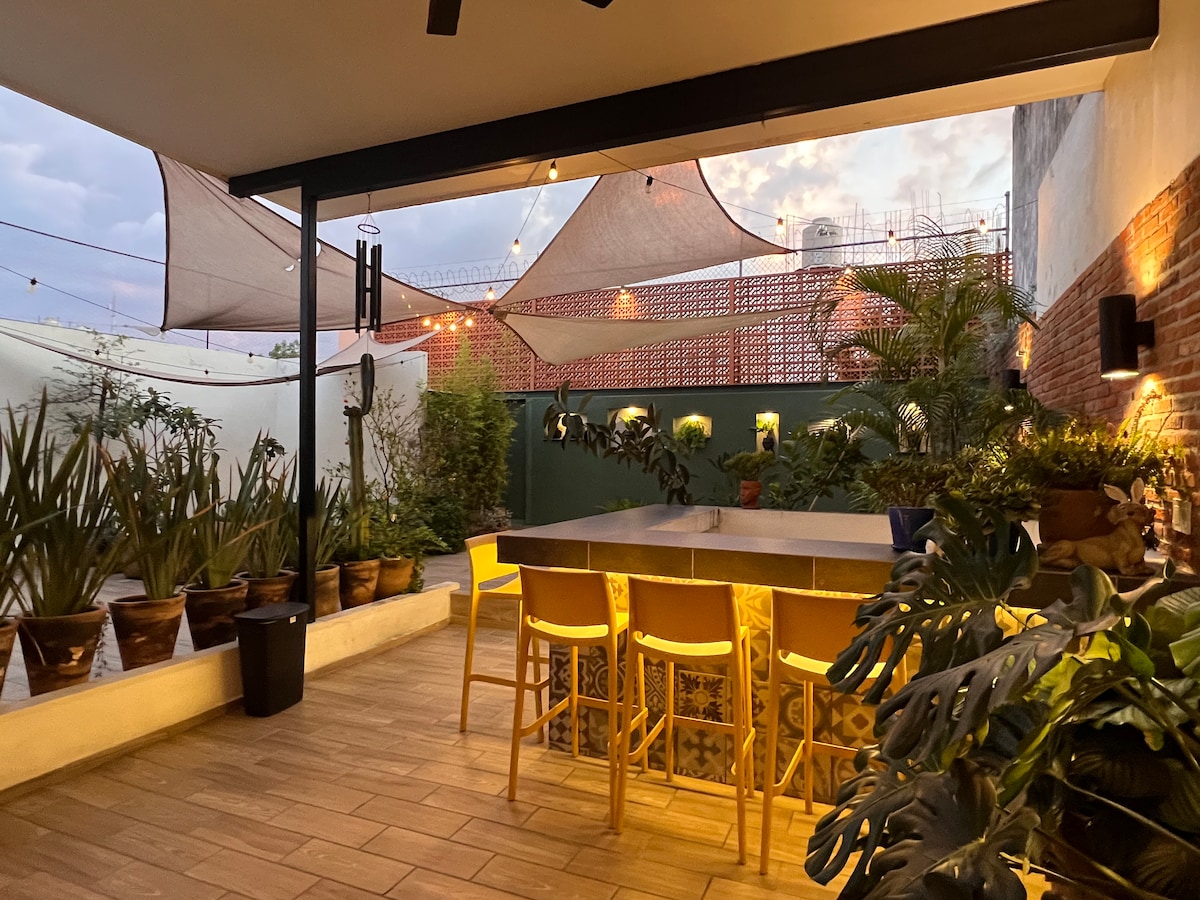 Colonia Americana ligt in een van de meest trendy zones in Guadalajara, op slechts een paar blokken afstand van Chapultepec Ave. en het historische centrum van Guadalajara. Geniet van je ochtendkoffie op je eigen dak terwijl je geniet van de zonsopgang of ontspant op de ligstoelen terwijl je je favoriete boek leest. Ideaal voor werk. In de omgeving vind je een grote verscheidenheid aan lokale winkels, mercados, restaurants en bars. Je kunt ontdekken waarom Jalisco bekend staat om zijn heerlijke eten en leuke mensen.