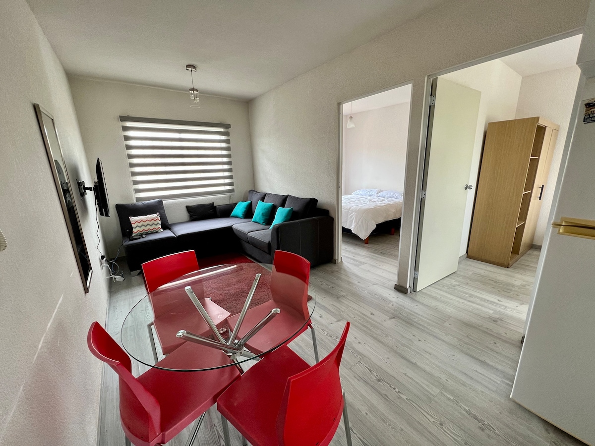 Departamento completamente equipado a tan solo 10 min del AIFA, estamos ubicados dentro de un fraccionamiento privado con acceso controlado y vigilancias las 24h, tiendas y restaurantes cercanos. Sí facturamos
