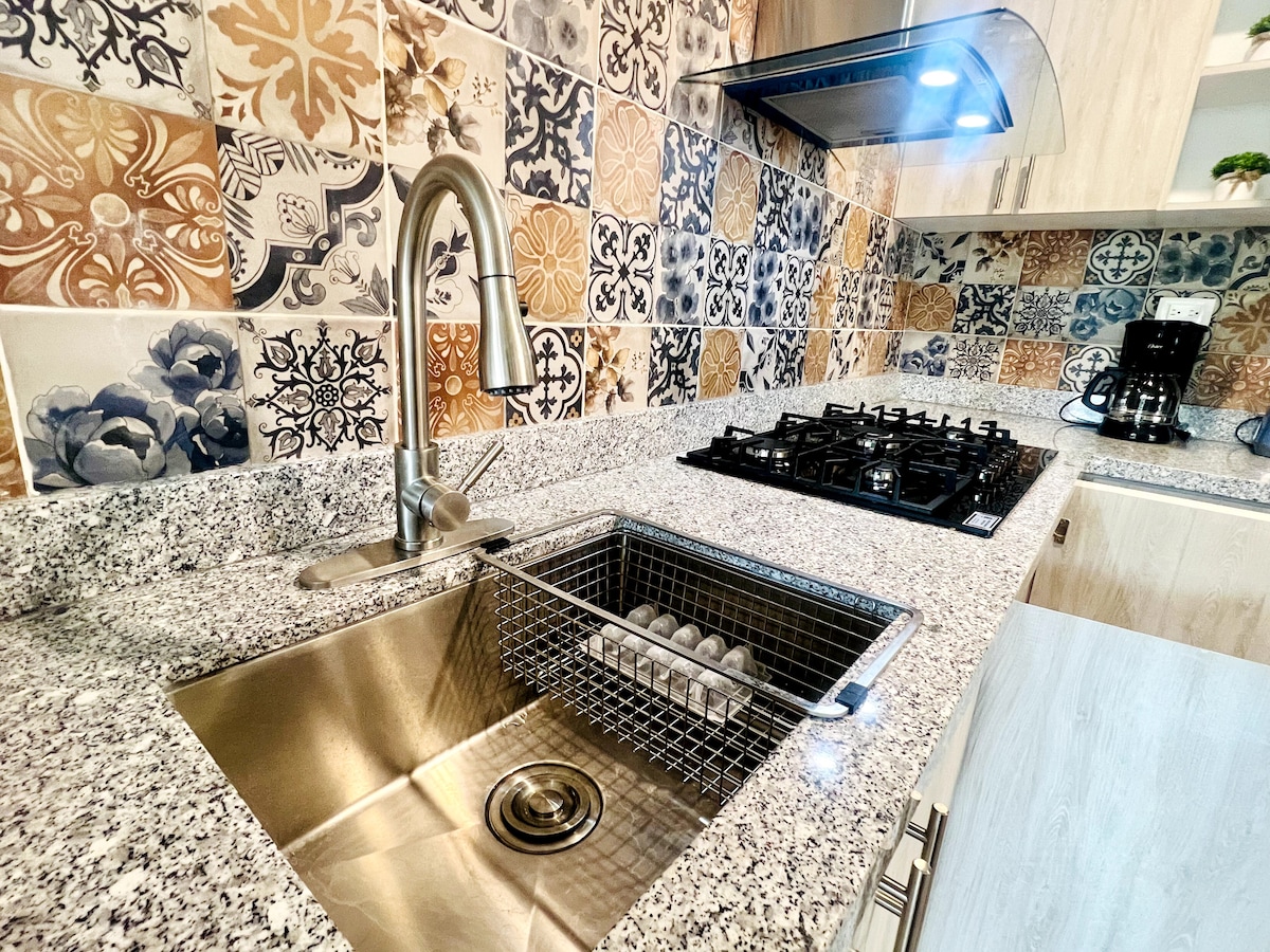 This gorgeous home features a bright and open interior with colorful furnishings and stylish accents. Notice the Mexican tiles in the kitchen. Admire the expressive artwork, and lounge on the vibrant blue sofa in the living area. The home's central location provides access to many of Puebla's historic sites. Walk to the iconic Puente de Bubas, roam the Biblioteca Palafoxiana, and explore the museums all while stopping to experience the fantastic local foods and drinks.