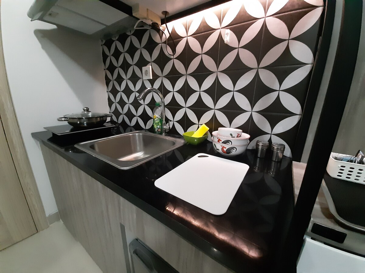 Kael Studio Apartment biedt een luxe en comfortabele verblijfservaring in de Yudhistira Tower, Mataram City. Met een elegant design en moderne voorzieningen, waaronder airconditioning, linnengoed en handdoeken van hotelkwaliteit, evenals een volledig uitgeruste badkamer en keuken. Ontspan op het balkon met uitzicht op de berg Merapi of geniet van onbeperkt entertainment met Netflix en snel internet. Faciliteiten zoals een fitnesscentrum en een infinity-zwembad maken elk moment van je verblijf onvergetelijk.