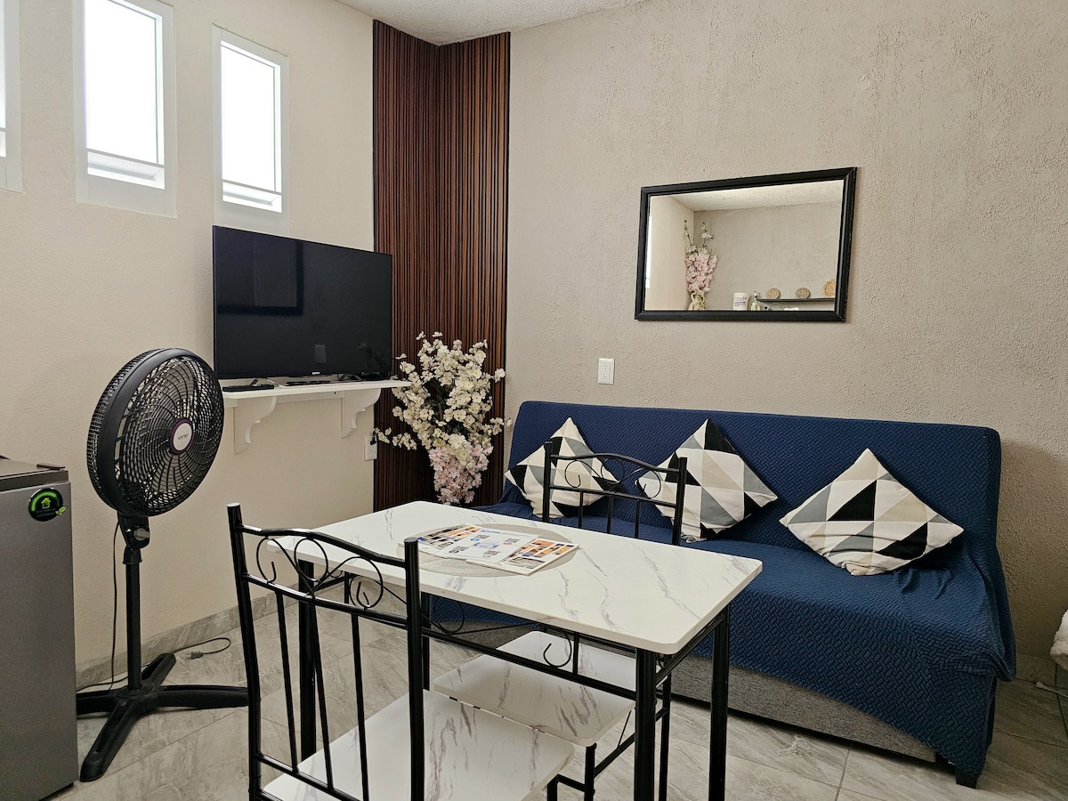 Klein appartement op een paar stappen van de Paseo Hidalgo, gezellig, rustig en centraal gelegen op een blok van de prachtige kathedraal van onze stad Tehuacán. Ideaal voor stellen of zakenreizigers die op zoek zijn naar een centraal verblijf. Veiligheid, comfort, netheid en rust. Met alle voorzieningen. Appartement op de eerste verdieping. ER IS GEEN PARKEERGELEGENHEID BESCHIKBAAR. Inchecken kan om 21.00 uur