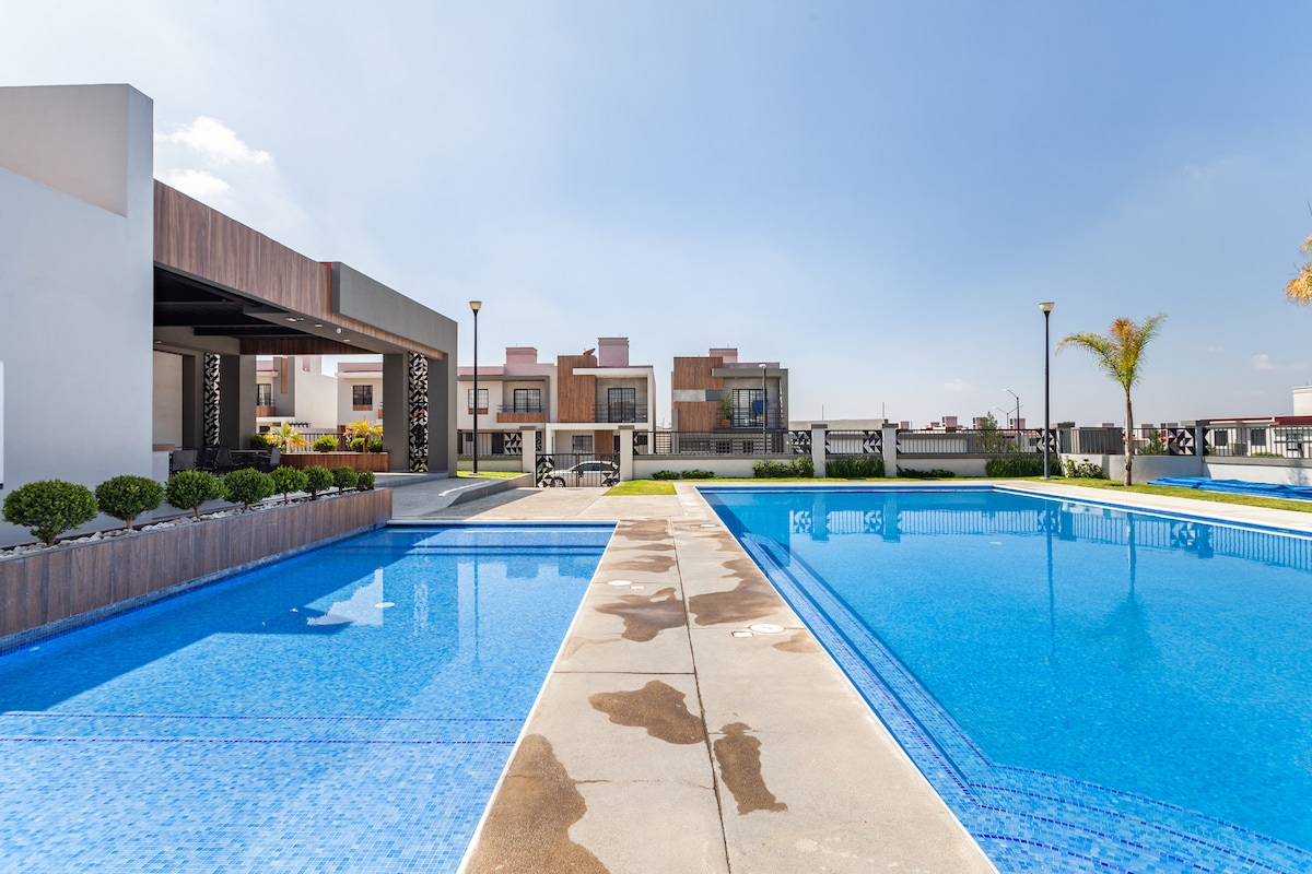 Dragon Apartment: je oase in Tizayuca. Ideaal voor maximaal 6 personen, met drie tweepersoonsbedden voor jouw comfort. Geniet van de rust van onze eigen El Huisache, met een zwembad en beveiligde parkeerplaats. Volledig uitgerust met wifi, schermen in elke kamer en woonkamer, volledige keuken en wasmachine. Een ruimte die is ontworpen voor je rust! Direct boeken voor jouw gemak!