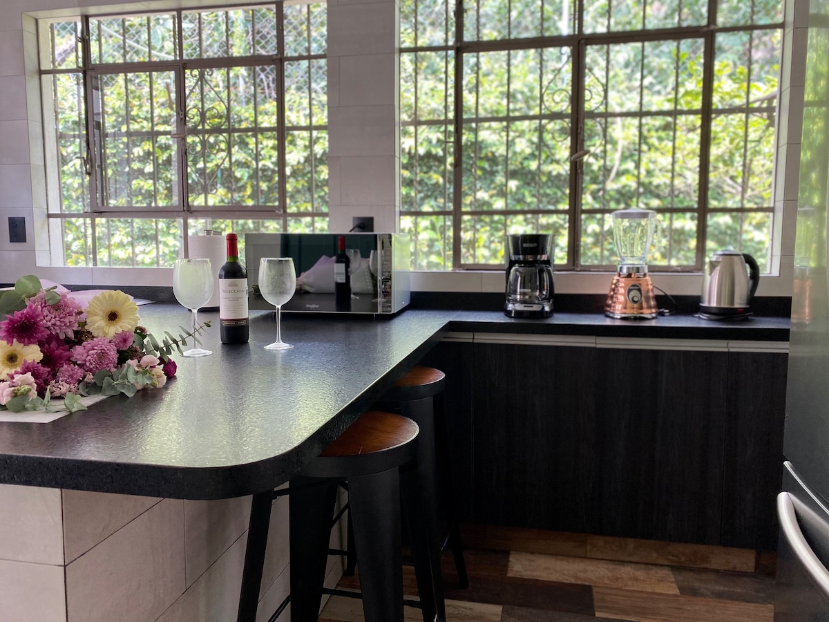 Come and enjoy Cuernavaca's weather. Beautiful bungalow located in a residential zone, only 3 minutes away from Downtown. It's an independent bungalow, inside a property where there's a house. In common areas there's a pool, private parking, high speed WiFi and an unbeatable view. Garden and pool areas are private, exclusive for you and your companions. Pool does not have heater. This place is great for those who want a private, quiet space to relax.
