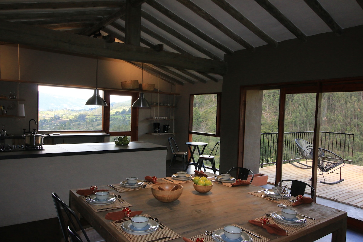 Spectaculair huis in het Reserva EL Turpial voor de Rocas de Suesca. Onverslaanbaar uitzicht vanuit de grote ramen die het heeft, je bent in het huis en je hebt het gevoel dat je in de natuur bent. Privacy en tuin. Zeer comfortabel voor gezinnen, 3 slaapkamers en 2 badkamers. Diverse buitensportopties.