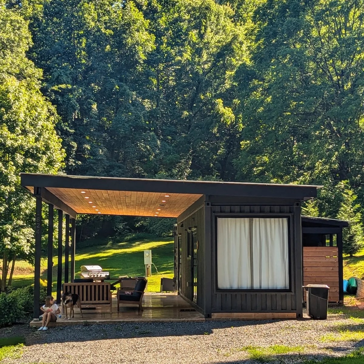 Maak opnieuw verbinding met de natuur bij deze onvergetelijke ontsnapping op 3,7 hectare. Onze 40' zeecontainer is een bergretraite op 15 minuten van het centrum van Blue Ridge, GA. Geniet van de zonsopgang vanuit de queensize slaapkamer omgeven door glas. De woonkamer heeft een slaapbank en 55inch tv Geniet van een grote badkamer met inloopdouche en een keuken met koelkast, fornuis, broodroosteroven en magnetron. Stream films vanaf de projector op de gigantische overdekte veranda met uitzicht op het bos.