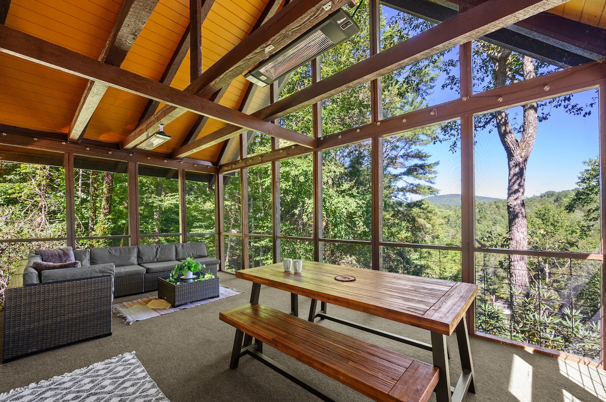 Op slechts 7 minuten van het centrum van Blue Ridge, is Bramble je bergspeeltuin Speel pickleball op je eigen baan, sla een hole-in-one bij minigolf of ontspan in het bubbelbad voor zes personen terwijl je uitkijkt over glooiende weilanden met koeien en paarden. Maak het gezellig bij een van de 3 open haarden, geniet van een filmavond in de buitenlucht of daag vrienden uit voor een partijtje pool of cornhole. Met 3 ruime slaapkamers, meerdere verzamelruimtes en eindeloze activiteiten is Bramble perfect voor familievakanties, groepsvakanties en romantische uitjes.