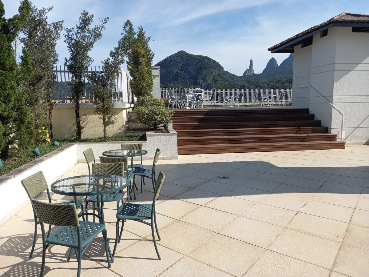 Loft met een geweldige locatie, dicht bij de belangrijkste bezienswaardigheden van de stad, in de wijk Alto, op minder dan 50 meter van de lokale handel, dicht bij Feirinha, Unifeso universiteit, Vila St Gallen, bars en restaurants, op minder dan 1 km van het Nationaal Park Serra dos Órgãos en CBF! Het heeft een 24-uurs portier!!